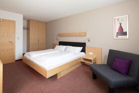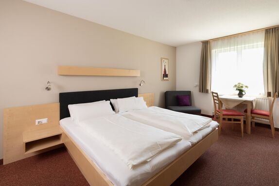 Dieses Doppelzimmer ist mit Teppich ausgelegt. Der Balkon ist nach Osten ausgerichtet und bietet einen direkten Blick auf die Kanisfluh. Die Nasszelle ist mit Dusche, WC, Föhn, Hand- und Duschtüchern sowie flüssiger Handseife ausgestattet. Ein Flachbild-TV, ein Safe, ein Kühlschrank und WLAN sind ebenfalls vorhanden. Das Zimmer kann auf Wunsch für 3 Personen aufgebettet werden.