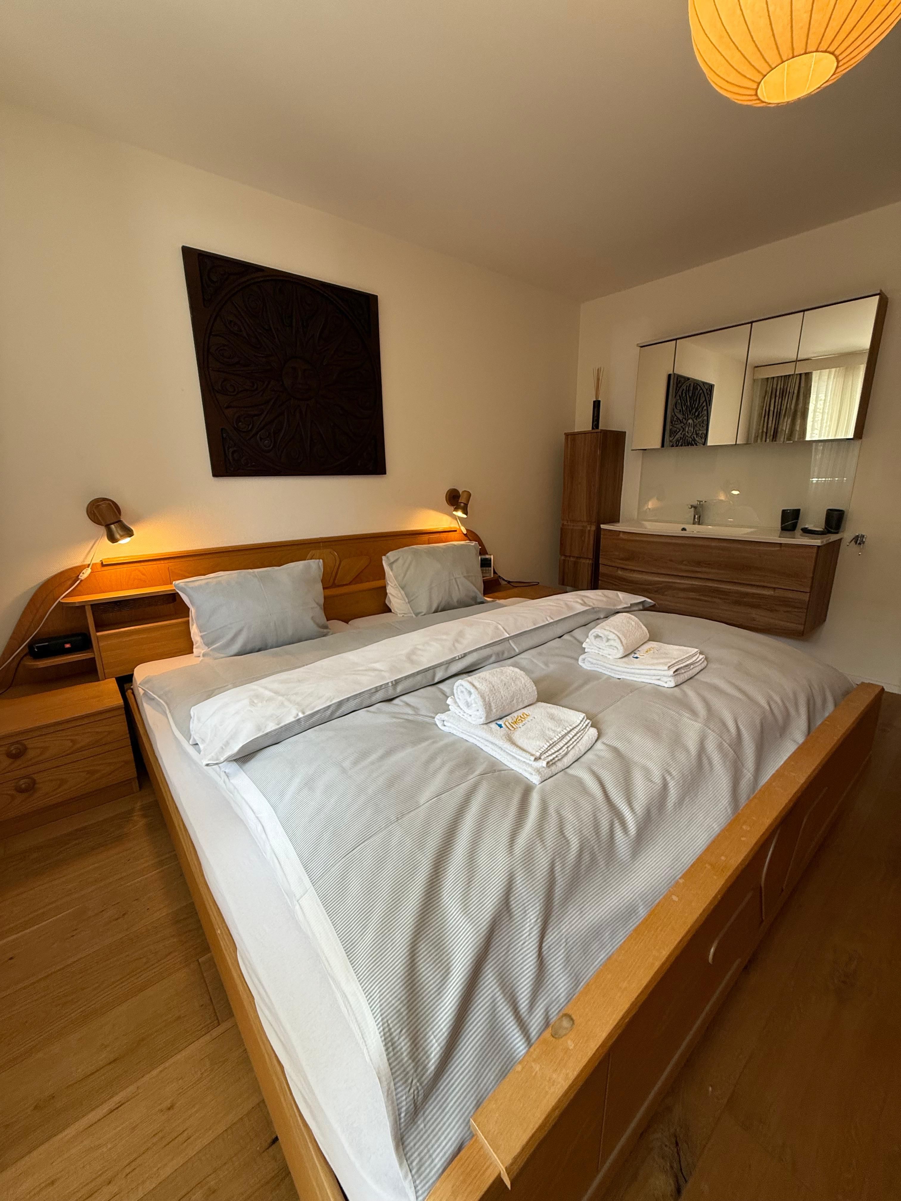 Bettwäsche und Handtücher inklusive
