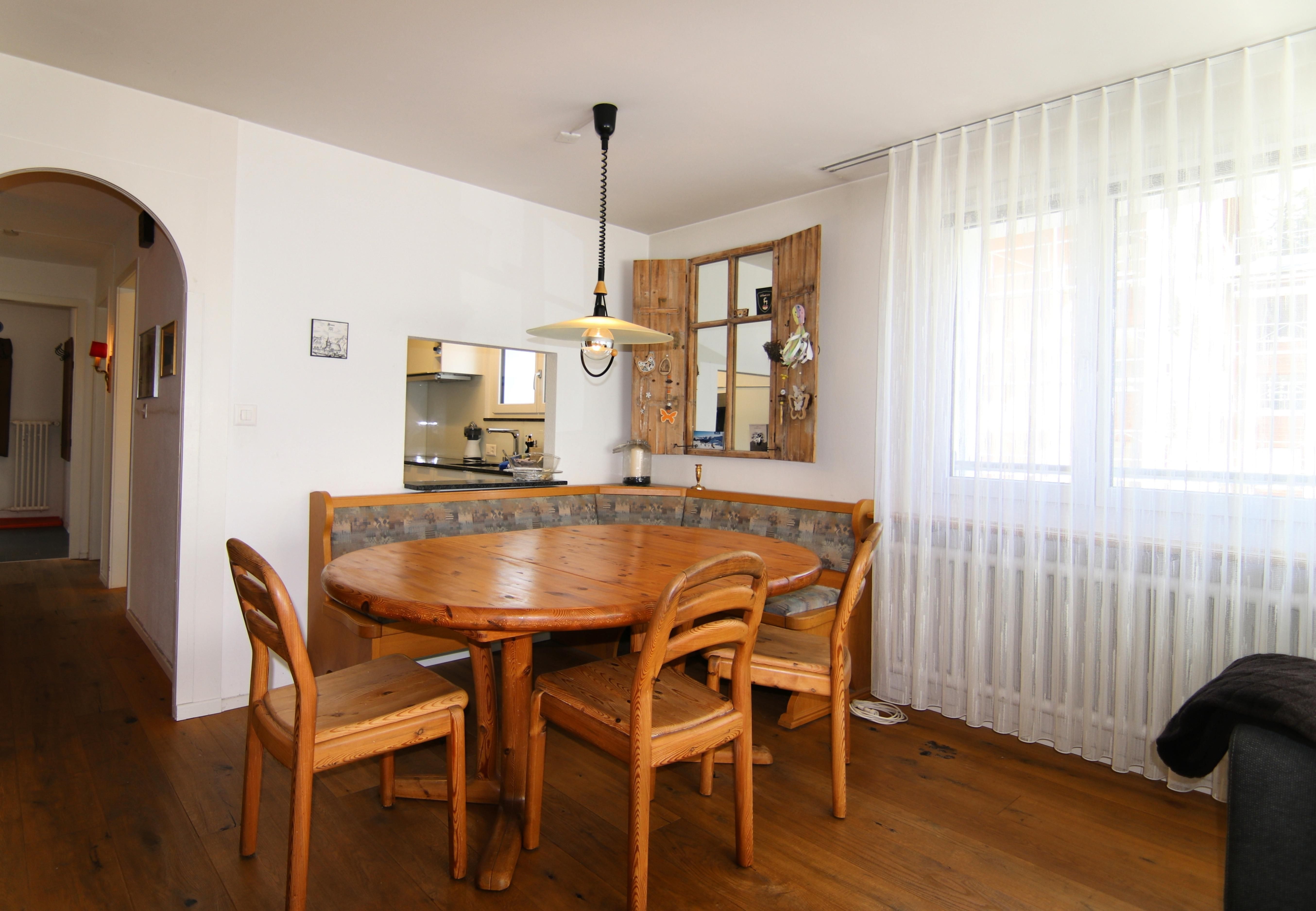 Grosszügige 4.5-Zimmerwohnung im 1. Stock eines Wohnhauses in zentraler aber ruhiger Lage. Die Wohnung hat drei Schlafzimmer, 1 Badezimmer, eine private Infrarotsauna sowie ein grosszügiges Wohn-und Esszimmer. Einkaufsmöglichkeiten und Bushaltestelle befinden sich sind ca. 200m Meter zu Fuss entfernt.