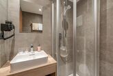 Küche ist komplett eingerichtet u.a. mit Kaffeemaschine, Toaster, Wasserkocher, Microwelle, 4 Plattenherd, Backofen, Geschirrspüler und Kühlschrank mit Tiefkühlfach. Das Appartement verfügt über eine kleine Terrasse mit Blick auf dem Innenhof. Schlafzimmer 1: Doppelbett und eine Schlafcouch mit eigene Dusche mit WC. Schlafzimmer 2: Doppelbett mit eigene Dusche und WC und TV.