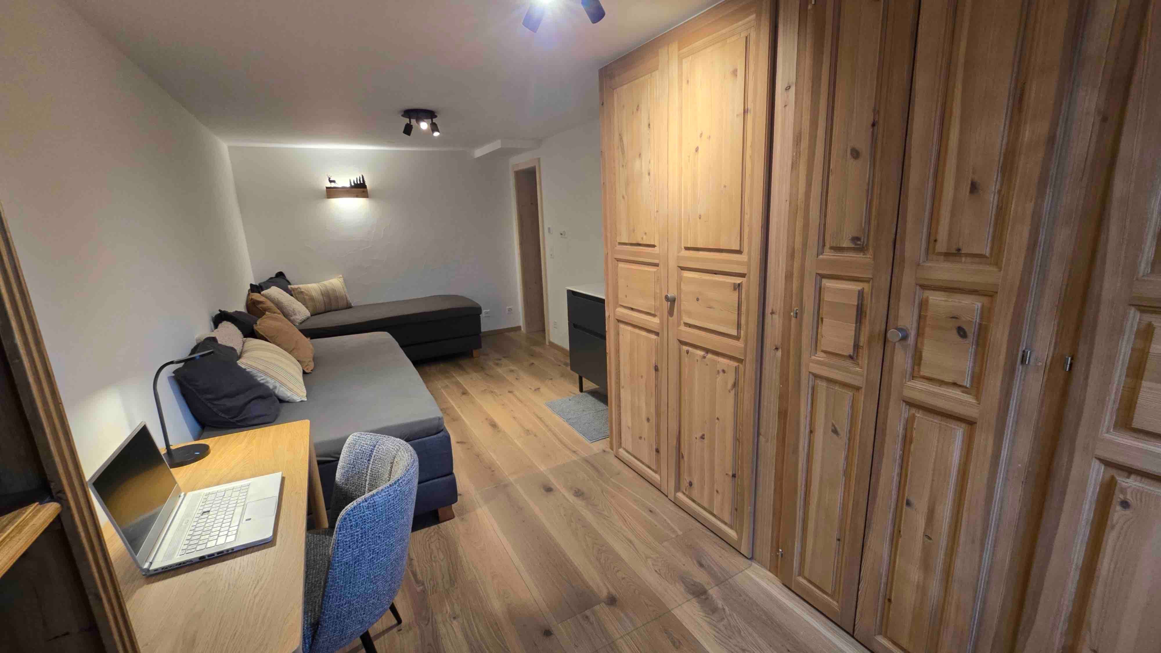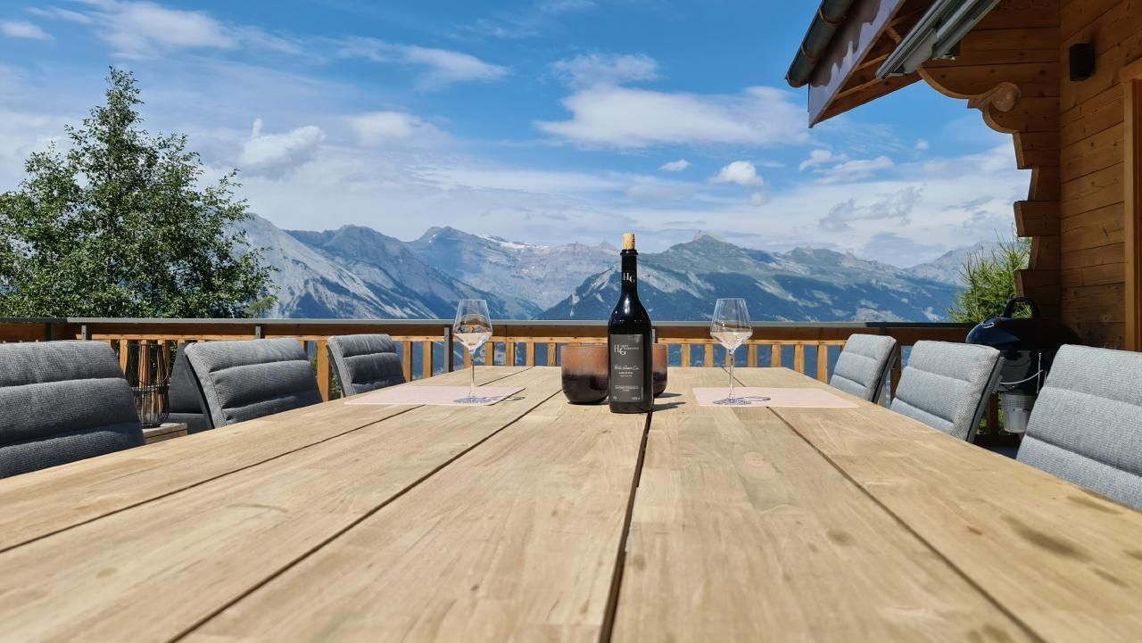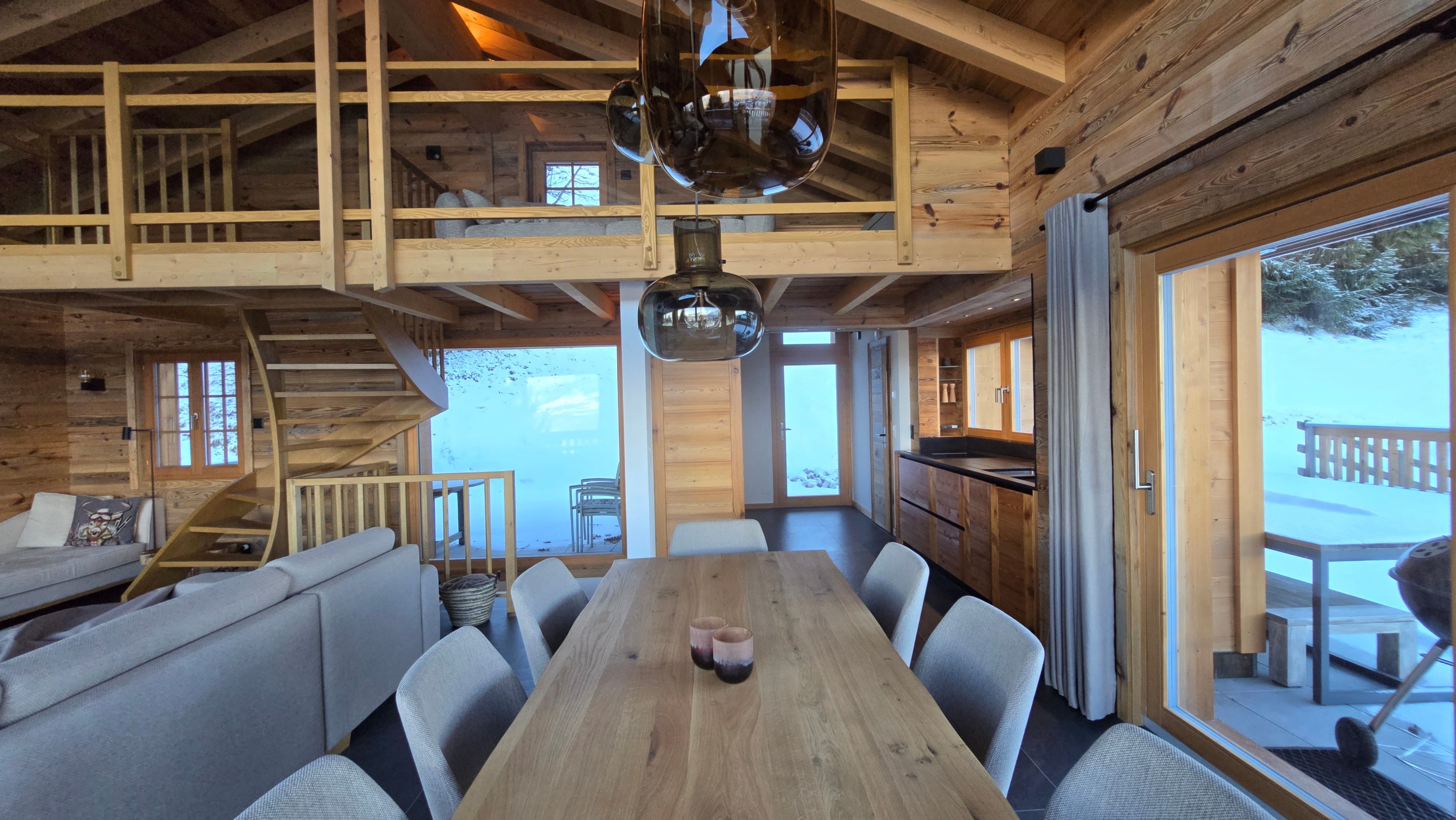 Der Außenbereich des Chalets enttäuscht nicht und bietet reichlich Gelegenheit zum Genießen und Entspannen im Freien. Die geräumige Terrasse lädt dazu ein, die Ruhe der Umgebung zu genießen, während der Balkon einen etwas höher gelegenen Platz bietet, um die frische Bergluft zu genießen. Die durchdachte Lage des Hauses am Ende einer ruhigen Sackgasse verstärkt das Gefühl von Privatsphäre und Ruhe und macht es zum perfekten Ort, um sich zu entspannen und die Natur zu genießen.