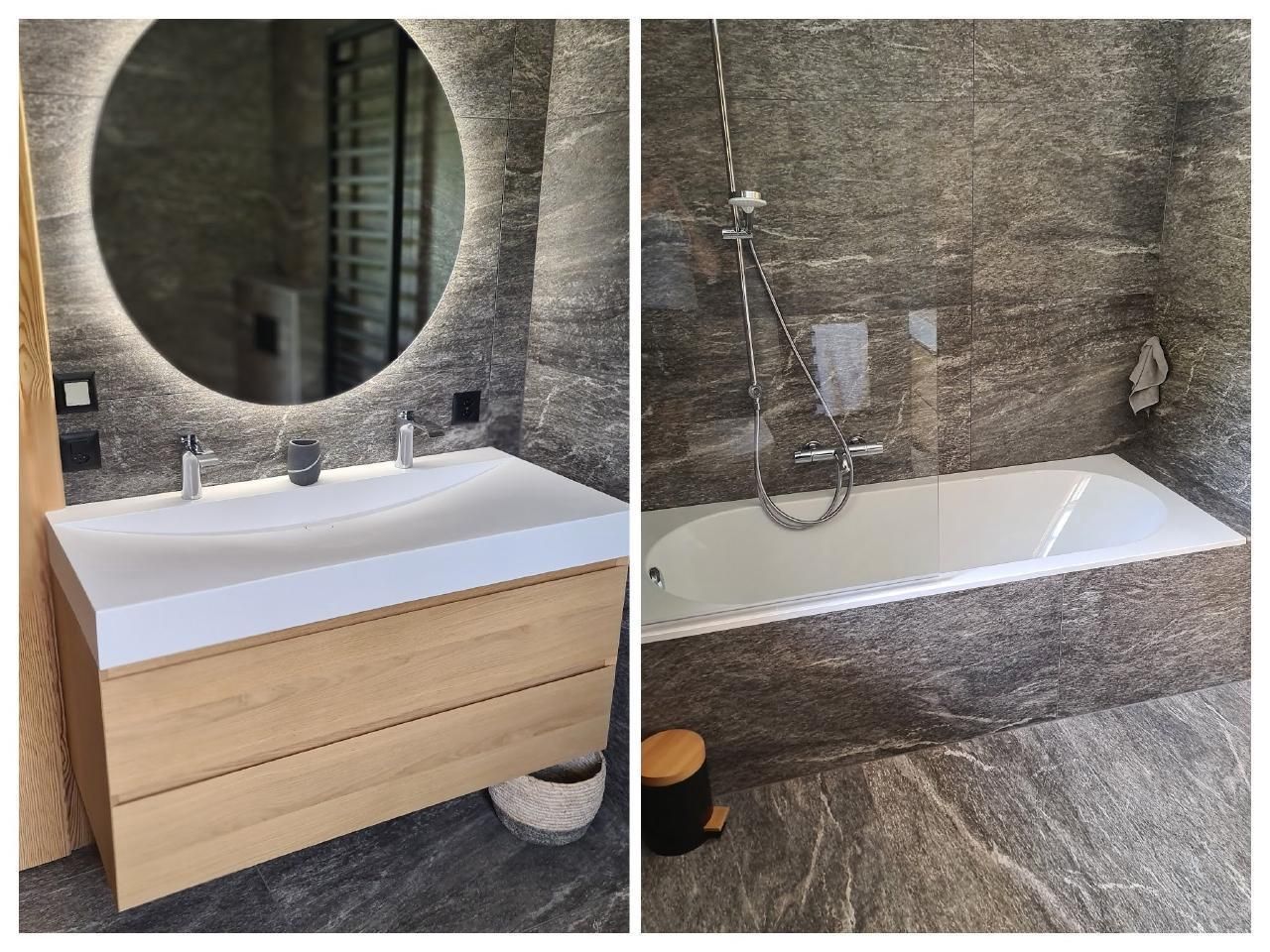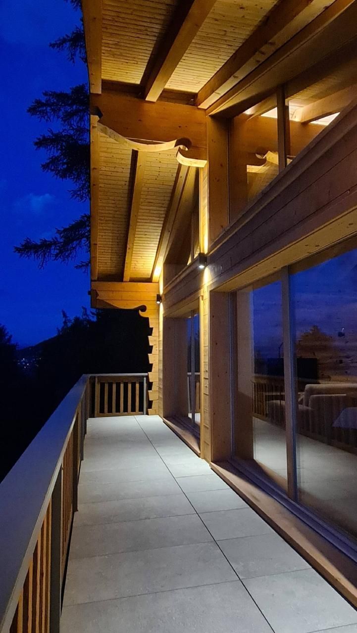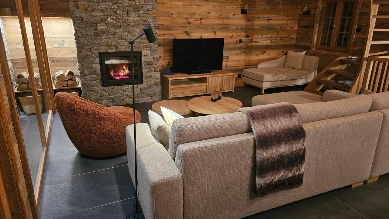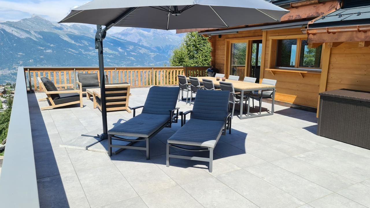 Der Außenbereich des Chalets enttäuscht nicht und bietet reichlich Gelegenheit zum Genießen und Entspannen im Freien. Die geräumige Terrasse lädt dazu ein, die Ruhe der Umgebung zu genießen, während der Balkon einen etwas höher gelegenen Platz bietet, um die frische Bergluft zu genießen. Die durchdachte Lage des Hauses am Ende einer ruhigen Sackgasse verstärkt das Gefühl von Privatsphäre und Ruhe und macht es zum perfekten Ort, um sich zu entspannen und die Natur zu genießen.