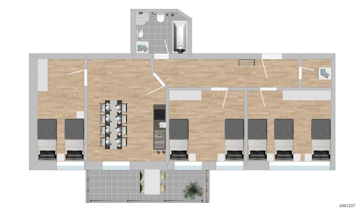 Auf dem Grundriss der Unterkunft können Sie die genaue Zimmer- und Bettenaufteilung sehen.