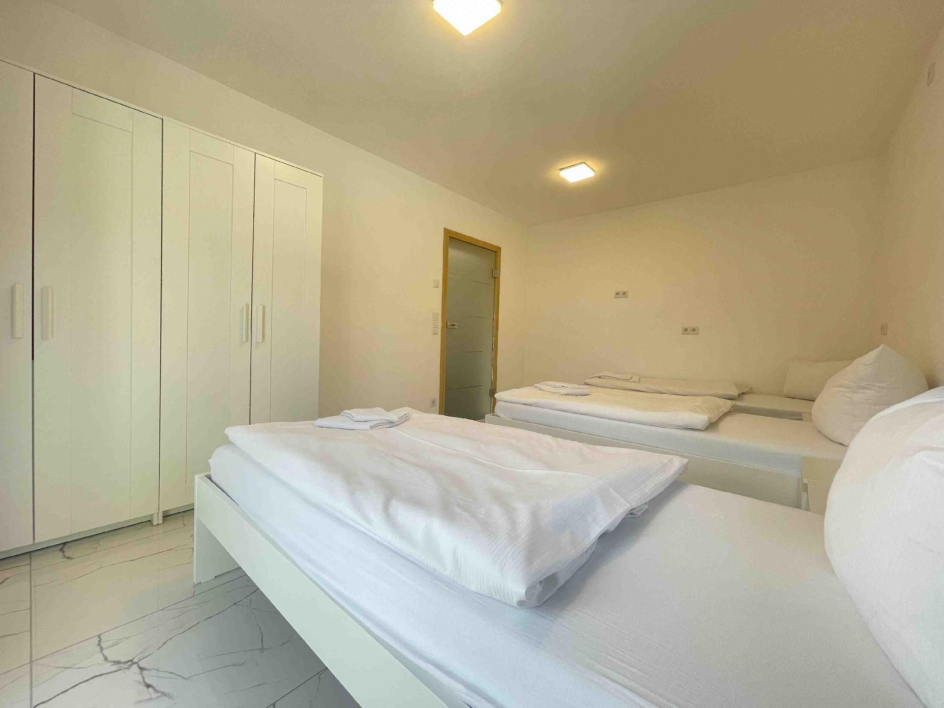 Das möblierte 115 m² große Loft-Apartment in Maxhütte-Haidhof umfasst vier Schlafzimmer mit zehn Einzelbetten und einem Schlafsofa und ist somit für bis zu elf Personen geeignet.