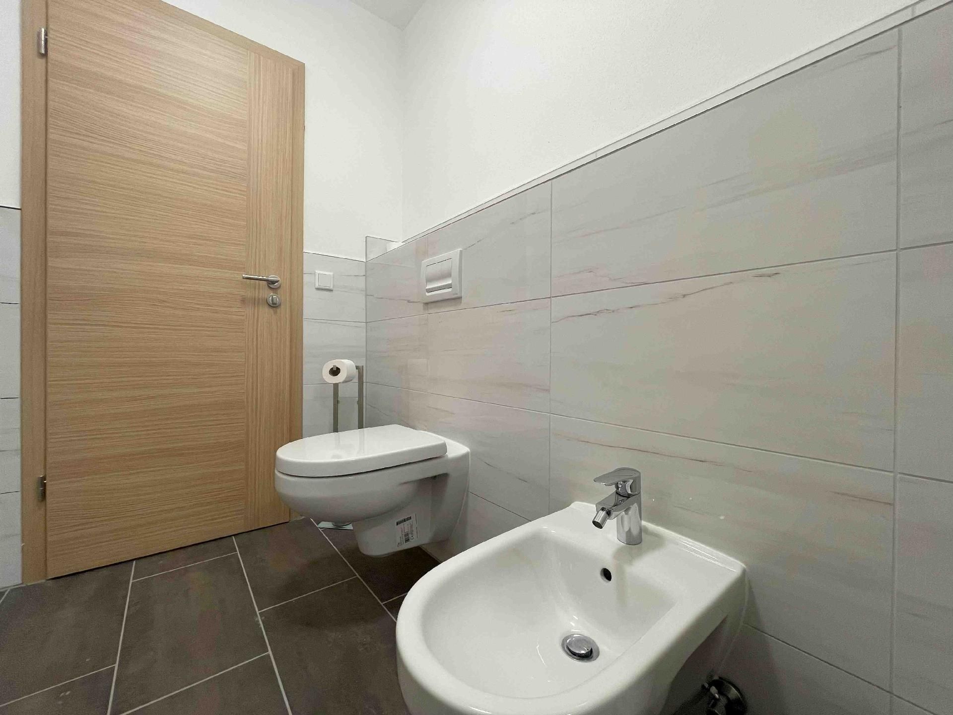 Das Badezimmer besteht aus einem WC, Waschbecken, einer Dusche und einer Badewanne. Ein zusätzliches WC ist vorhanden.