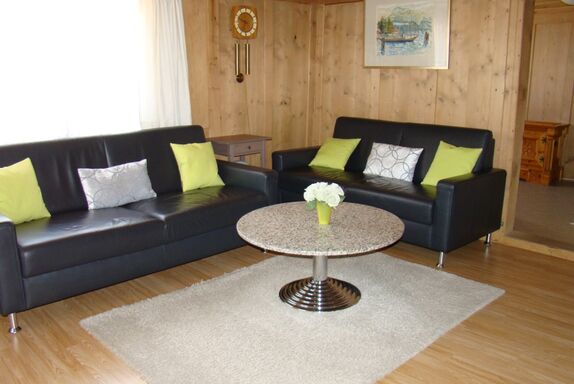 Gemütliche 4.5 Zimmer-Wohnung mit 7 Betten. Hochparterre: Wohnimmer mit TV, gut eingerichtete Küche, 1 Zimmer mit Einzelbett, Badezimmer mit Dusche und WC. 1.Stock: 2 Schlafzimmer mit Doppelbetten, 1 Zimmer mit 2 Einzelbetten, separates WC. Kinderbett vorhanden.