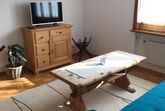 Separates Wohnzimmer mit Parkettboden, Swisscom TV, WiFi.