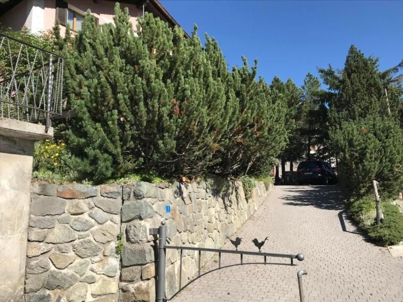 Die Ferienwohnung befindet sich in einem Zweifamilienhaus am Rande von Pontresina, direkt am Wanderweg, mit Blick zum Piz Palü, Richtung Berninapass.