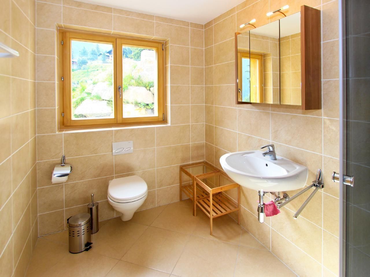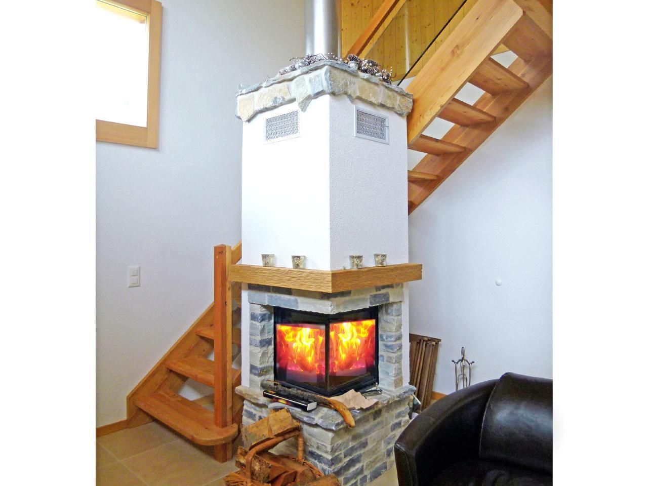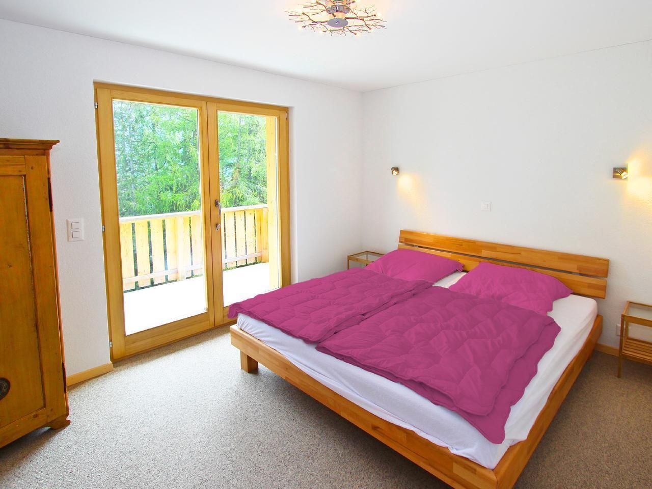 Komfort-Chalet mit Sauna, offenem Kamin und Gratis WLAN. Das großzügige und sehr gut ausgestattete Chalet verfügt über 3 Doppelzimmer, eines davon 'en-suite' mit eigenem Badezimmer, ein Schlafzimmer mit 2 Einzelbetten, eines mit 3 Einzelbetten sowie 2 weitere Bäder. Licht durchflutetes, geräumiges Wohn-/Esszimmer mit gemütlicher Sitzecke am offenen Kamin. Modern eingerichtete offene Küche. Zusätzliche Mezzanine unter dem Dach, mit Sitzgelegenheiten und Unterhaltungselektronik (Flachbild-TV, DVD-Player, Stereoanlage und IPod-Docking-Station), als weiterer Aufenthaltsbereich. Von den Balkonen herrliche Aussicht auf die Dreitausender der Berner Alpen und über das Rhonetal.