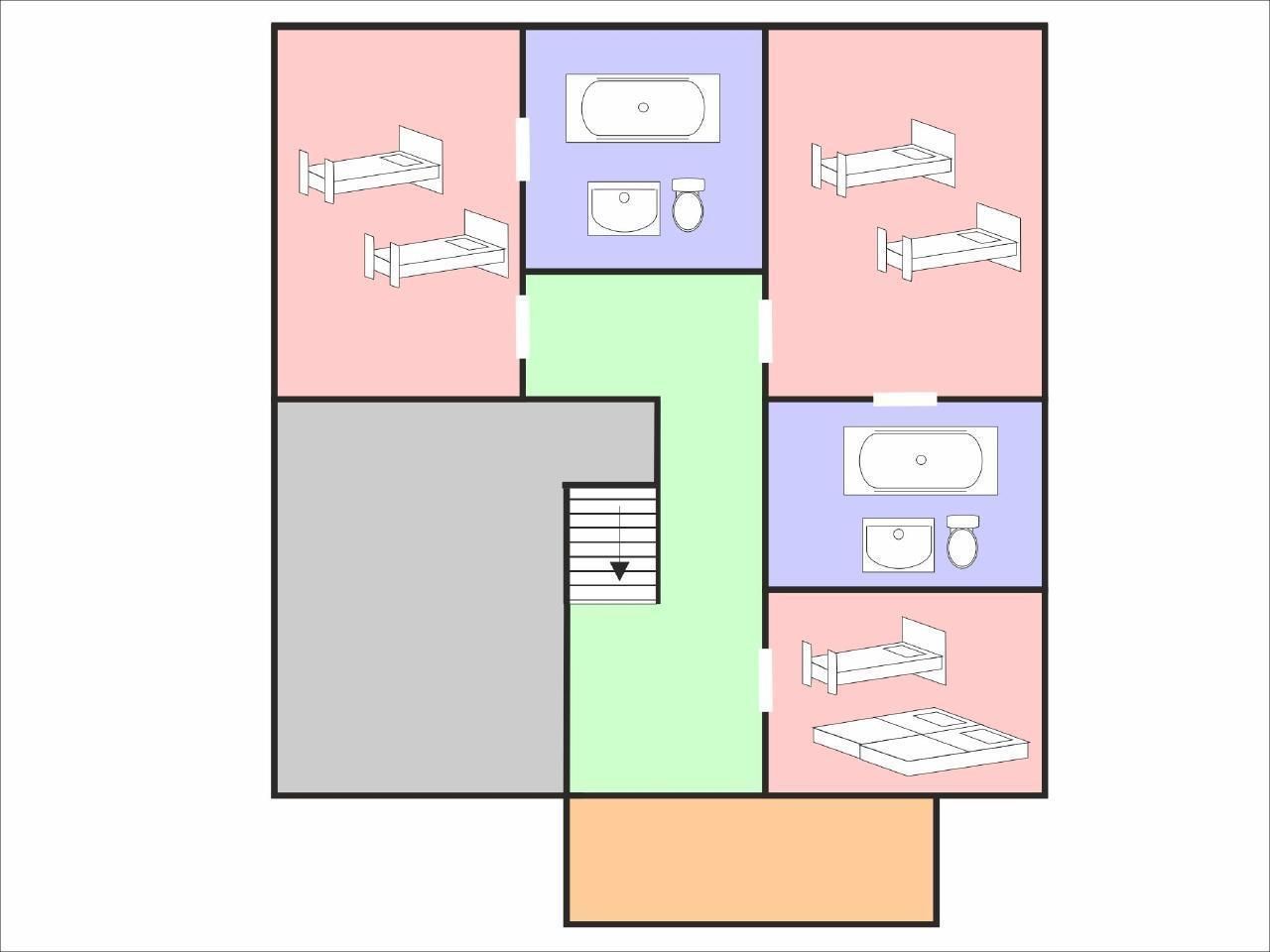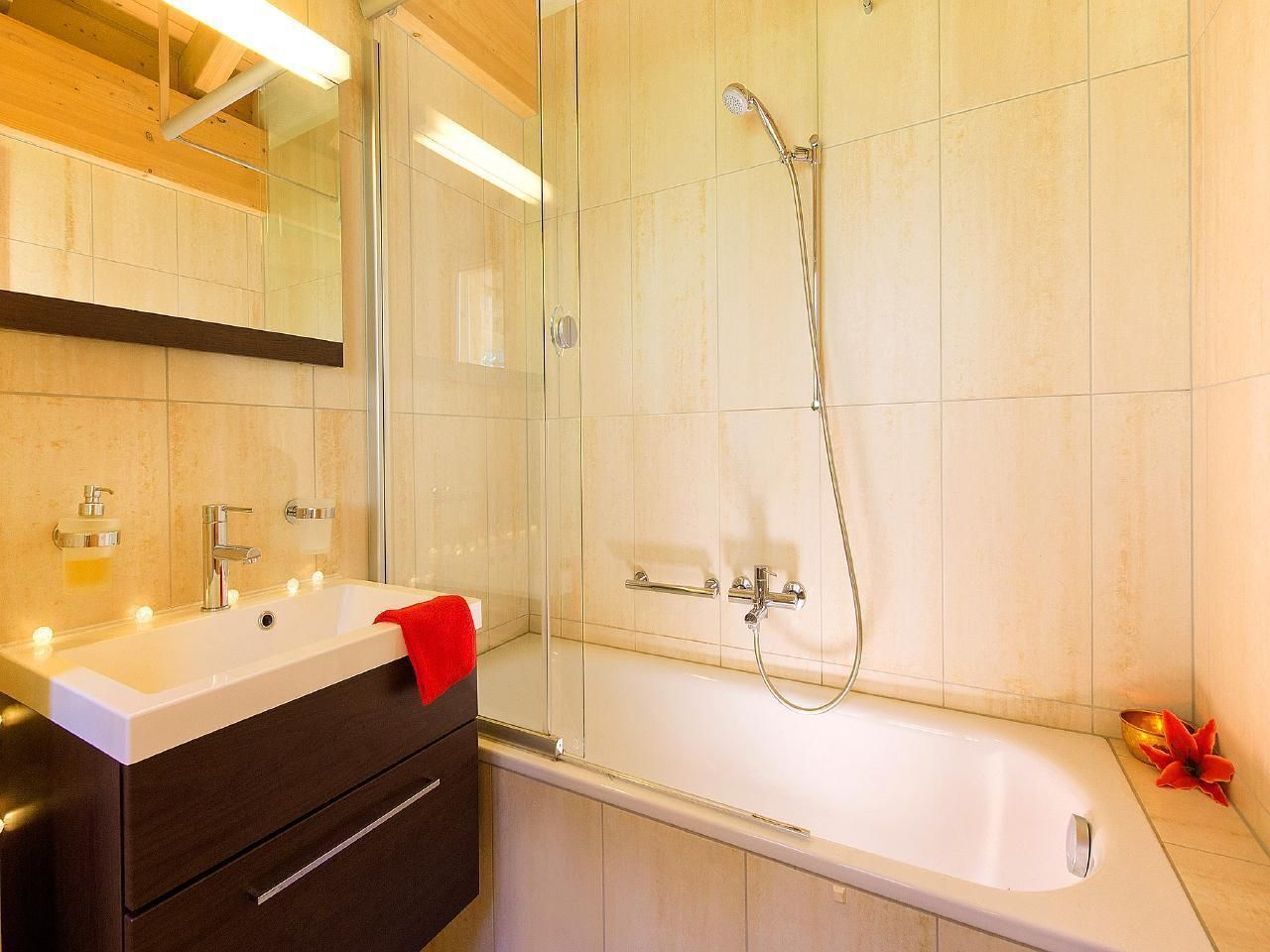 Auf der oberen Etage finden Sie ein Schlafzimmer mit zwei Einzelbetten und 'en-suite' Badezimmer mit Badewanne/WC, ein weiteres Schlafzimmer mit zwei Einzelbetten sowie ein separates Bad mit Badewanne/WC. Auf der Mezzanine befindet sich ein kleines Zimmer mit herrlichem Bergpanorama, mit Einzelbett und Ausziehbett (für 2 Personen).
