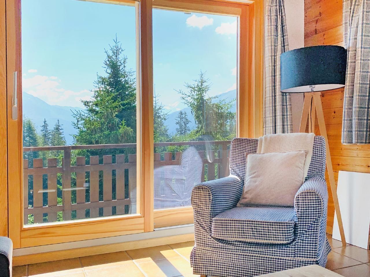 Attraktives Komfort-Chalet in Ski in – Ski out Lage auf 1.900 m Höhe, mit offenem Kamin und Gratis-WLAN. Das Chalet liegt mitten im Skigebiet (~150 m), mit Pkw erreichbar, auf den Almwiesen der Alpage de Thyon, oberhalb von Les Collons, nahe der 4er-Express-Sesselbahn Etherolla (~350 m). Im Erdgeschoss befindet sich der behagliche, helle Wohnbereich mit einer gemütlichen Kaminecke; ideal zum Entspannen nach einem langen Ski- oder Wandertag. Über eine Treppe gelangt man zur Mezzanine/Galerie mit Sofa, die als zusätzlicher Lese- und Aufenthaltsbereich dient und über einen und großen Flatscreen-Kabel-TV verfügt. Die offene Küche ist komplett ausgestattet. Sie verfügt über eine Jura-Kaffeemaschine. Direkter Zugang zum großzügigen Balkon. Atemberaubender Panoramablick auf die Walliser Alpen mit dem Val d'Hérens und dem Viertausender Dent Blanche.
