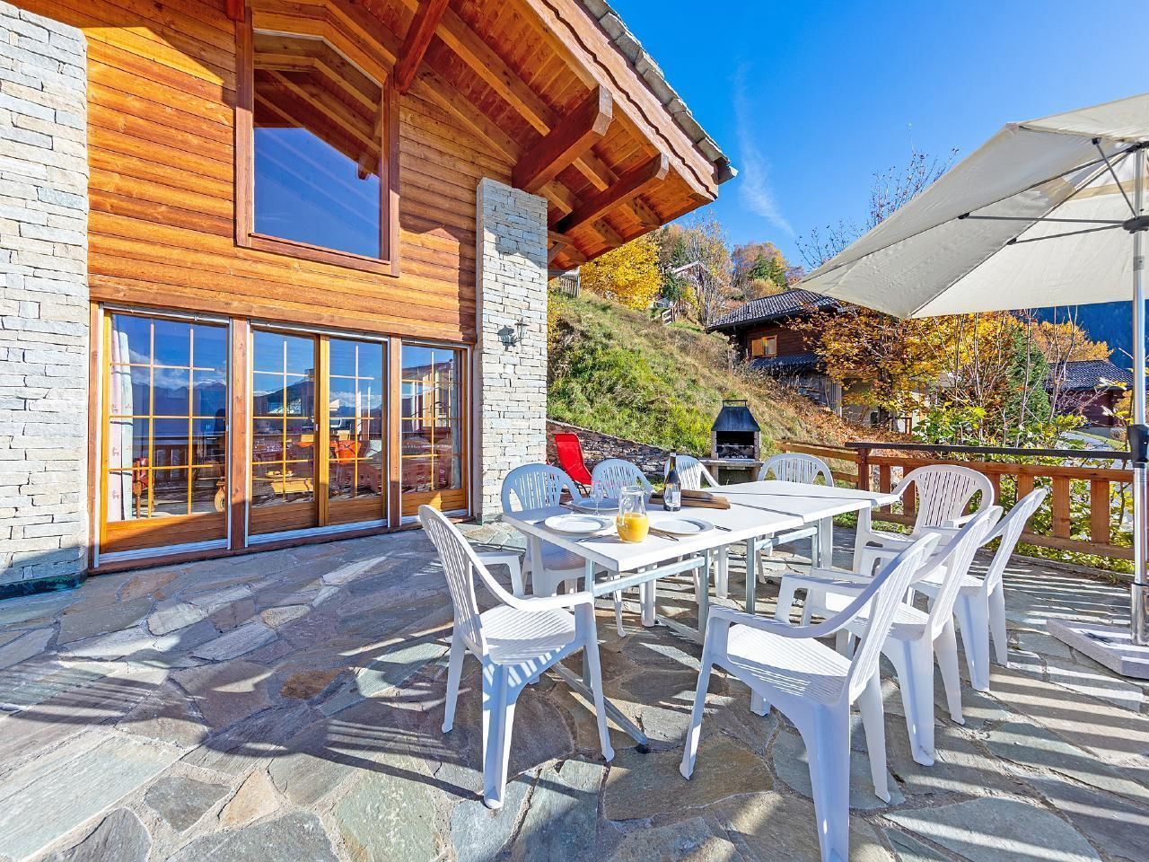 Es gibt eine kostenlose Garage für ein Auto vor dem Chalet sowie einen kostenlosen Privatparkplatz in der Nähe des Chalets (~150 m).Veysonnaz ist ein traditioneller Ferienort im Herzen der Walliser Alpen. Das Dorf genießt nicht nur eine optimale Sonneneinstrahlung und einen Blick auf das Rhonetal, sondern ist auch das Tor zum größten Skigebiet der Schweiz, den 4 Vallées (neue Express-Gondelbahn bis auf 2000 m Höhe). Supermarkt und Restaurants ~ 300 m. Bäckerei in ~500 m. Hallenbad in ~ 800 m Entfernung. Skibushaltestelle ~ 300 m.