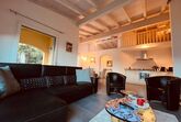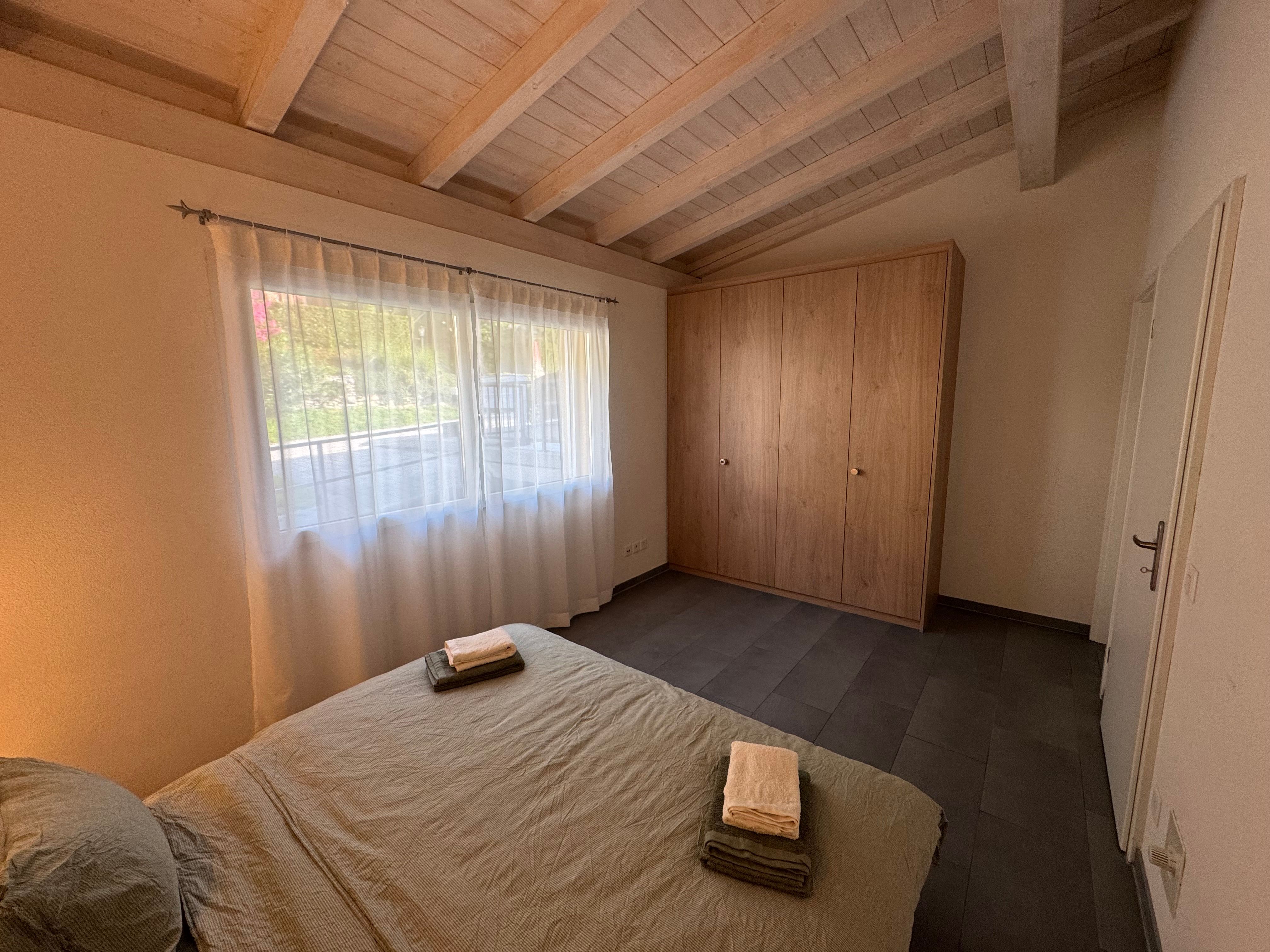 Im Inneren erwartet Sie ein komfortabel ausgestatteter Wohnbereich, der keine Wünsche offen lässt (die Gallerie ist privat und den Mietern nicht zugänglich). Zwei Schlafzimmer mit teilweise zugänglichen Einbauschränken gewährleisten eine ungestörte Nachtruhe. Beide Badezimmer, eines als En Suite zum grösseren Schlafzimmer mit grosser Badewanne und eines mit Dusche, bieten ausreichend Komfort und Privatsphäre für alle Gäste. La Camelina ist auch wintertauglich - dafür sorgt die Fußbodenheizung überall in der Wohnung. Ein Standventilator bringt Erfrischung an wärmeren Tagen, wobei sich dank der erhöhten Lage (580m über Meer) die Temperaturen angenehmer anfühlen, als im Talboden. Zur modernen Ausstattung gehören auch ein Cerankochfeld, eine Nespresso-Kaffeemaschine, ein Wasserkocher und eine Spülmaschine - alles, was Sie für eine selbstständige Versorgung benötigen. Entertainment bieten - neben dem herrlich gelegenen Pool - der Smart-TV und die Nähe zur Berglandschaft und Natur direkt vor Ihrer Tür.