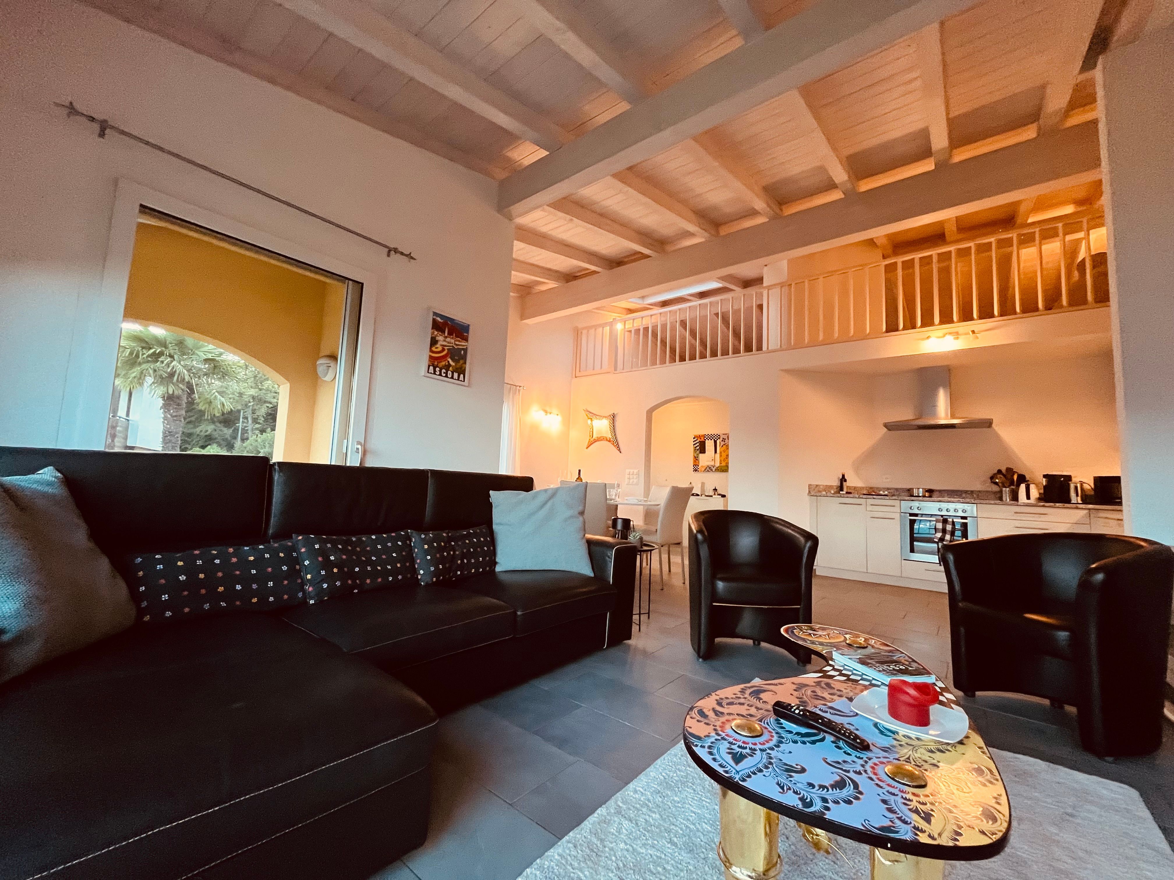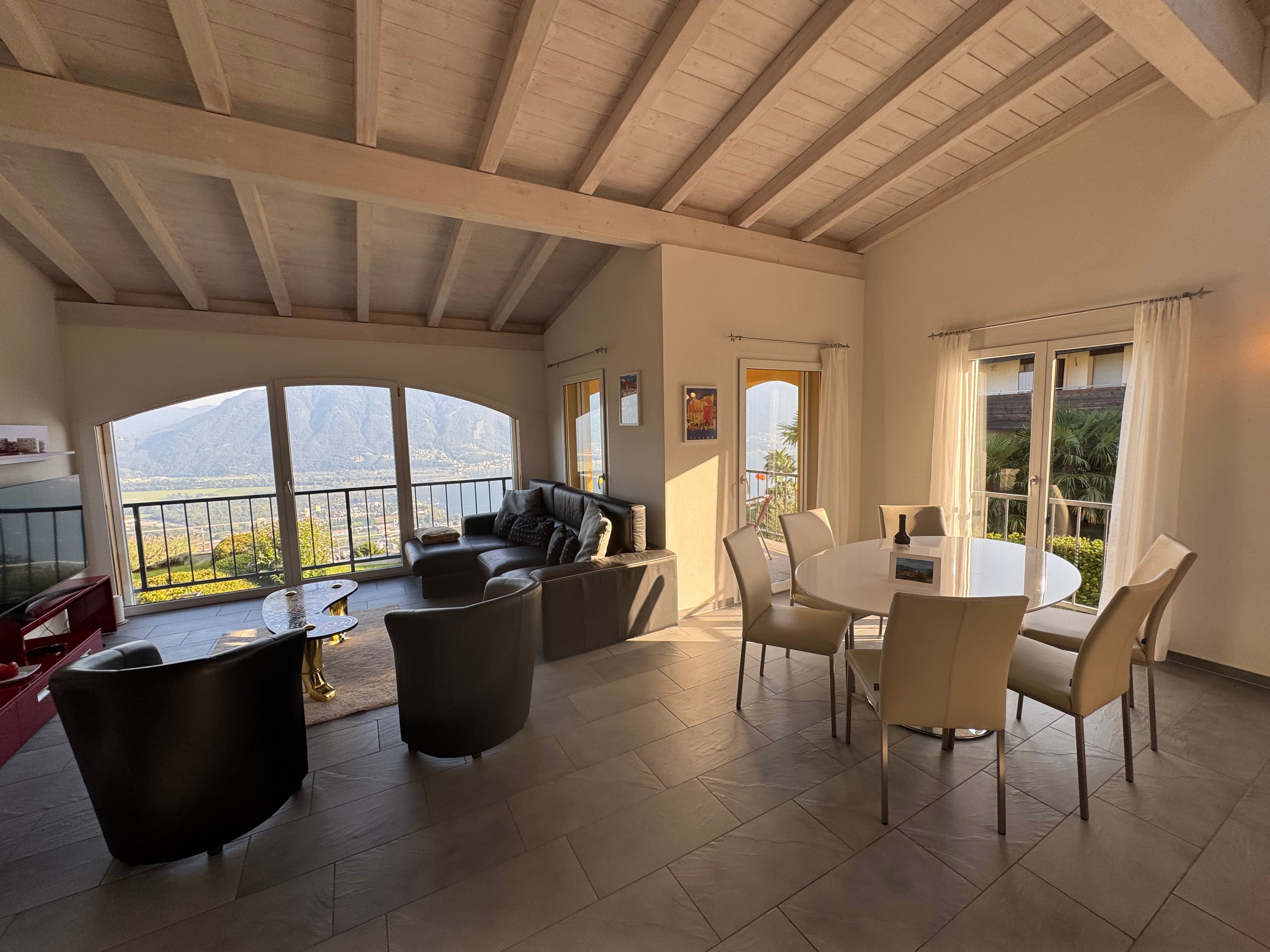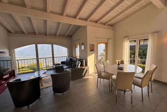 Willkommen zu Ihrem nächsten Urlaubsziel in Tenero-Contra, im malerischen Ticino, der Sonnenstube der Schweiz. La Camelina - unsere geräumige und umfassend ausgestattete Ferienwohnung ist praktisch im Grundriss, und doch elegant in der Anmutung. Sie bietet eine wunderbare Aussicht auf den Lago Maggiore, die Berge rund um den Monte Tamaro und die Magadinoebene. Die Wohnung ist ebenerdig erreichbar als oberste Einheit einer raffiniert angeordneten, südländisch anmutenden Terrassenliegenschaft. Sie eignet sich ideal für Paare oder Familien bis zu 5 Personen und bietet Ihnen den perfekten Ausgangspunkt, um die Schönheiten des Locarnese zu entdecken und zugleich in privater Atmosphäre zu entspannen. Genießen Sie die Ruhe am Ende der Strasse zuoberst in Contra, direkt am Beginn des Wanderwegs. Eine Umgebung, die zum Erkunden einlädt.