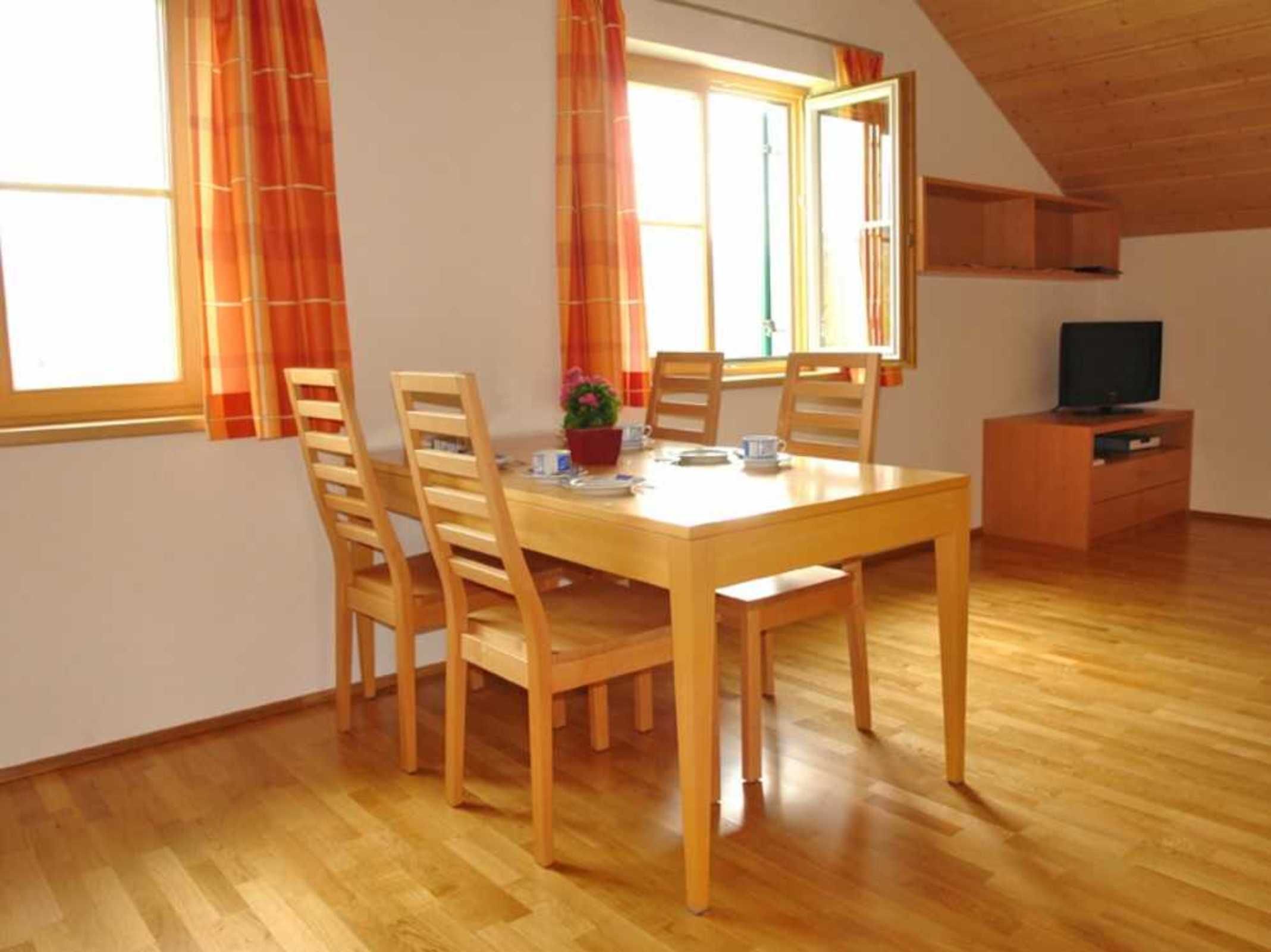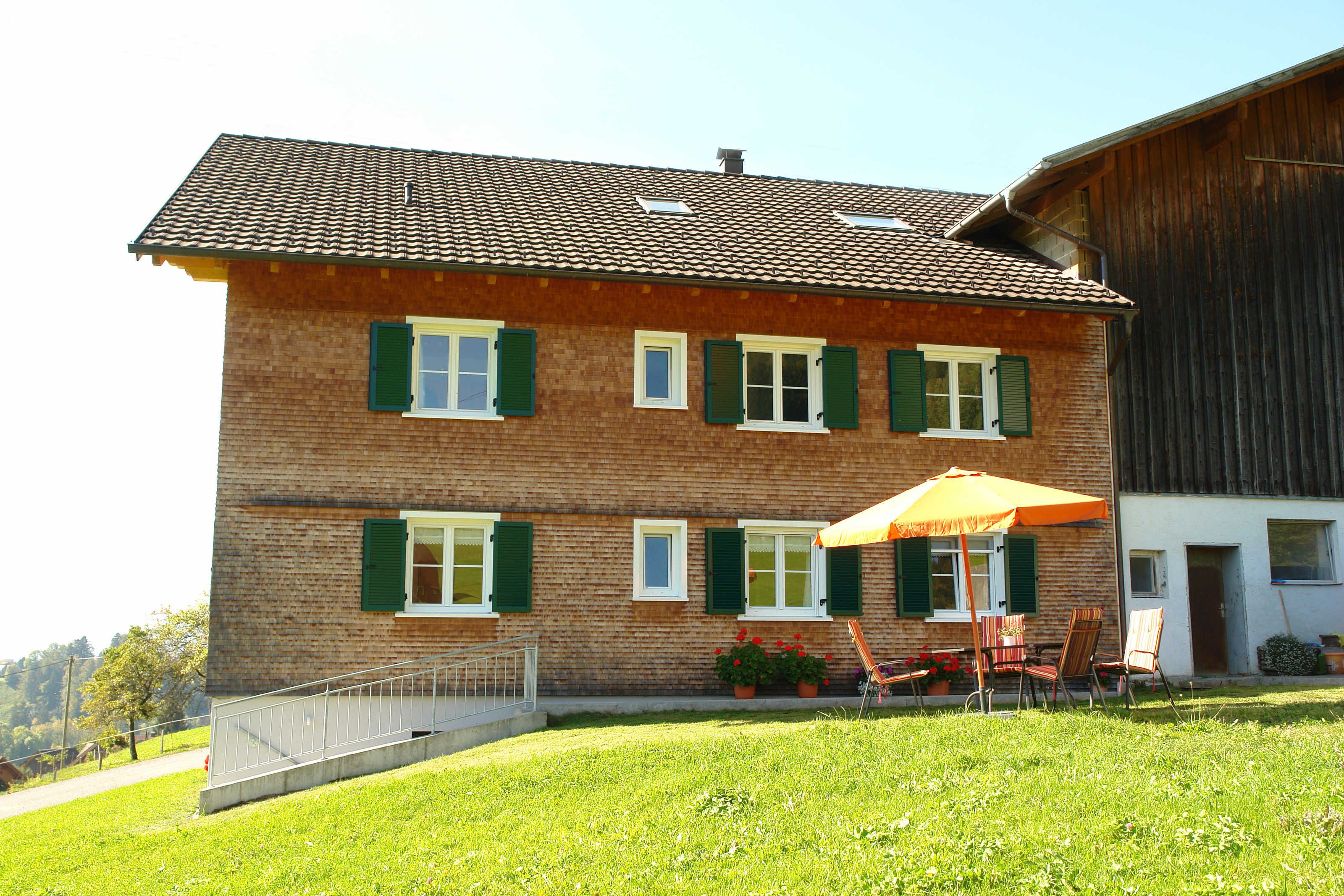 Unsere 85 m2 Ferienwohnung befindet sich im Haupthaus des Ferienhof Eberle. Traditionelle Architektur mit Naturholz sorgen für Ihr Wohlbefinden.