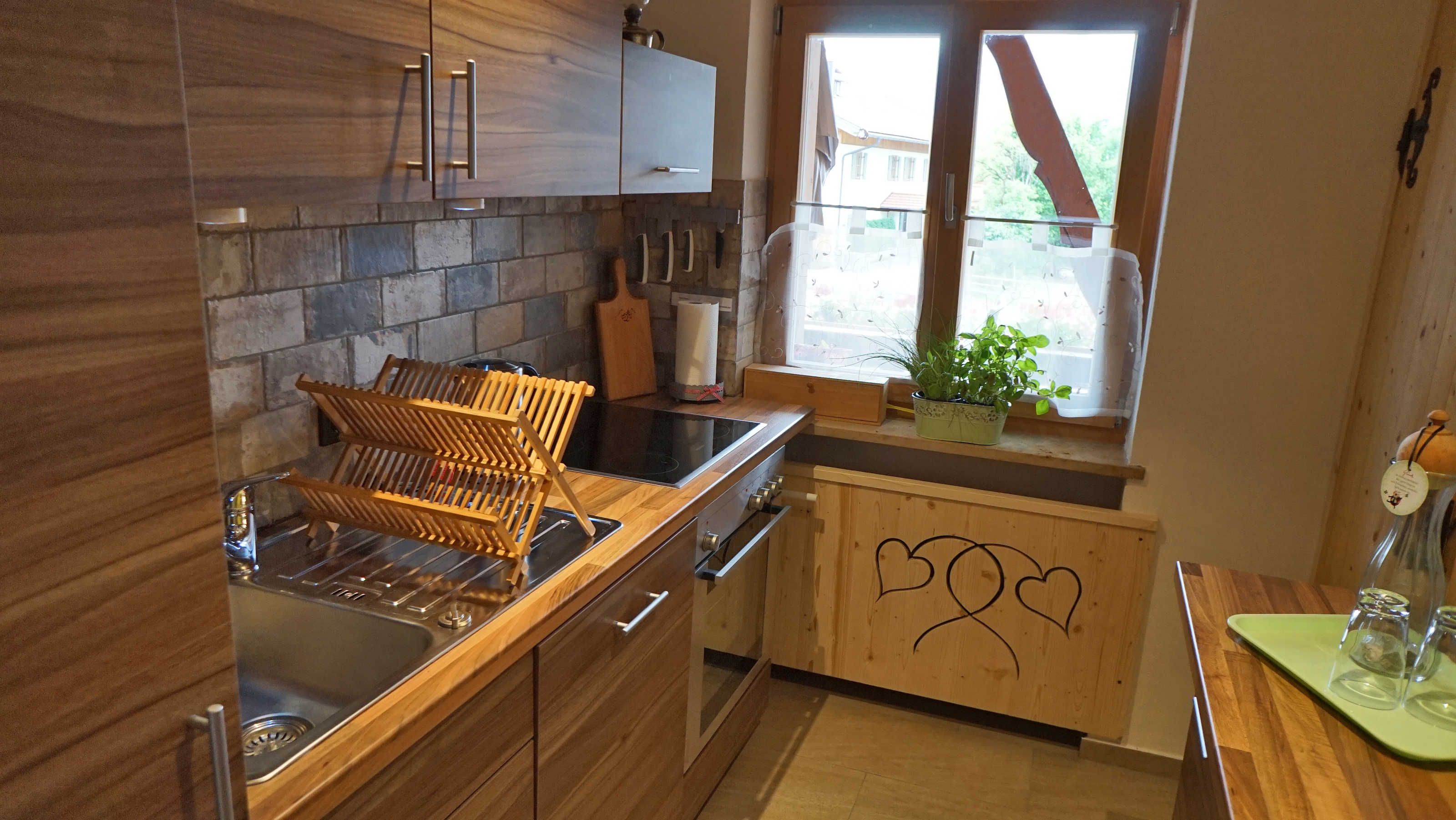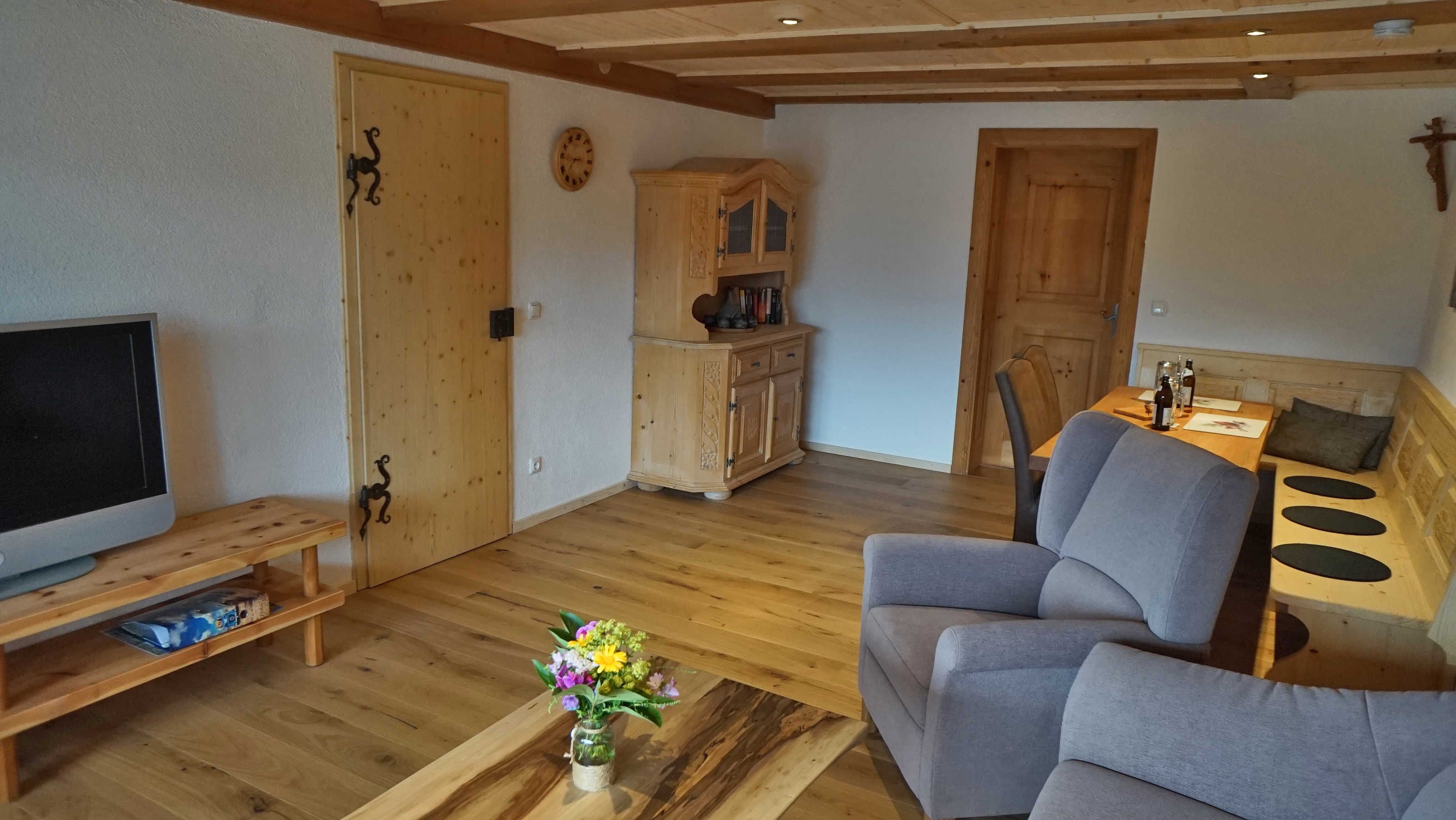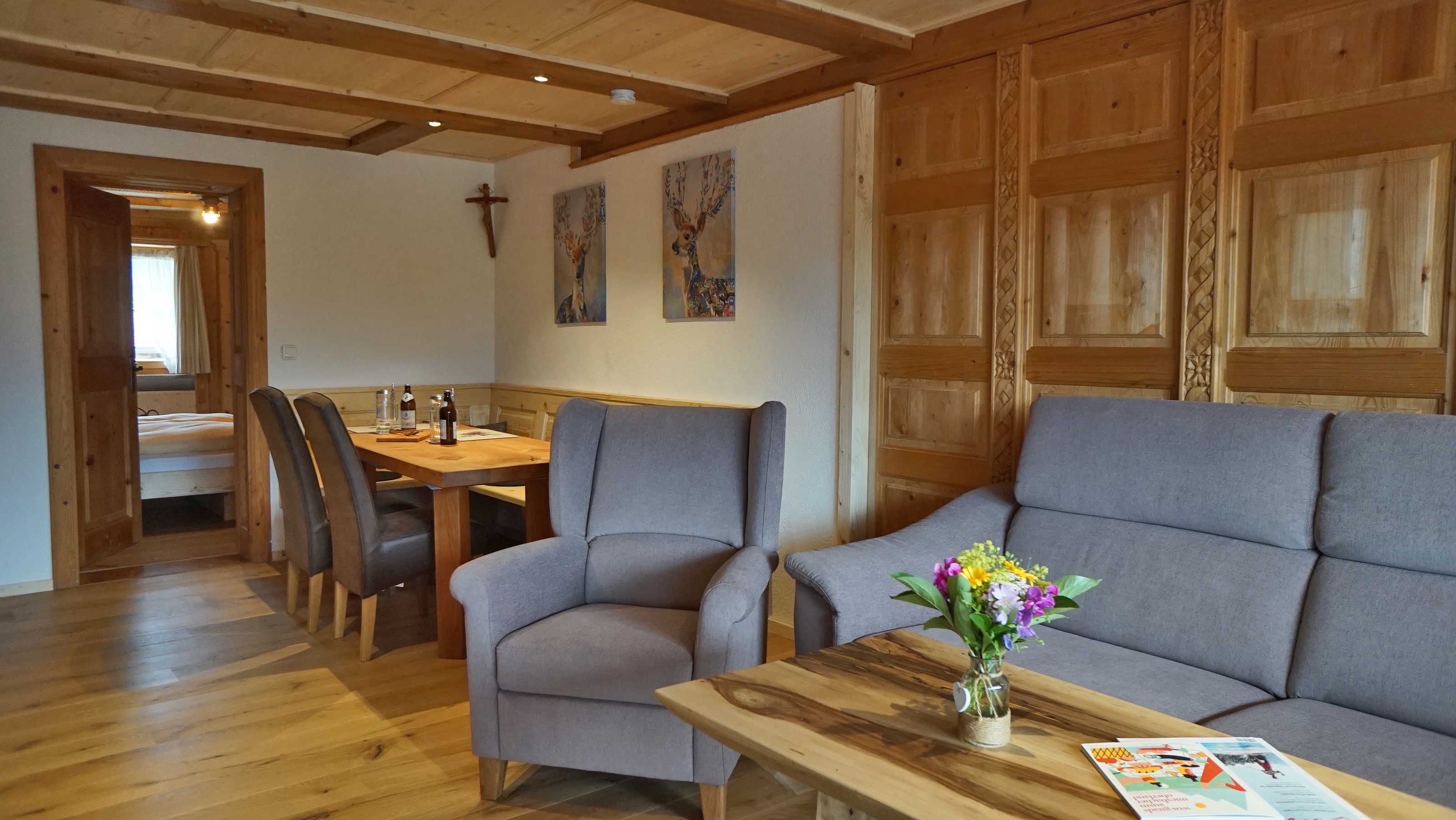 unsere Ferienwohnung Aueralm ist im ersten Stock, mit zwei Schlafzimmern( die bei zwei Personen extra gebucht werden können). Mit einem Feierabend- Sonnenbalkon hat sie alles was man im Urlaub benötigt: Eine kleine Küche mit Spülmaschine, zwei seperate Toiletten, ein modernes Bad mit Waschmaschine und ein gemütliches Wohnzimmer mit Couch und einem großzügigem Essbereich.