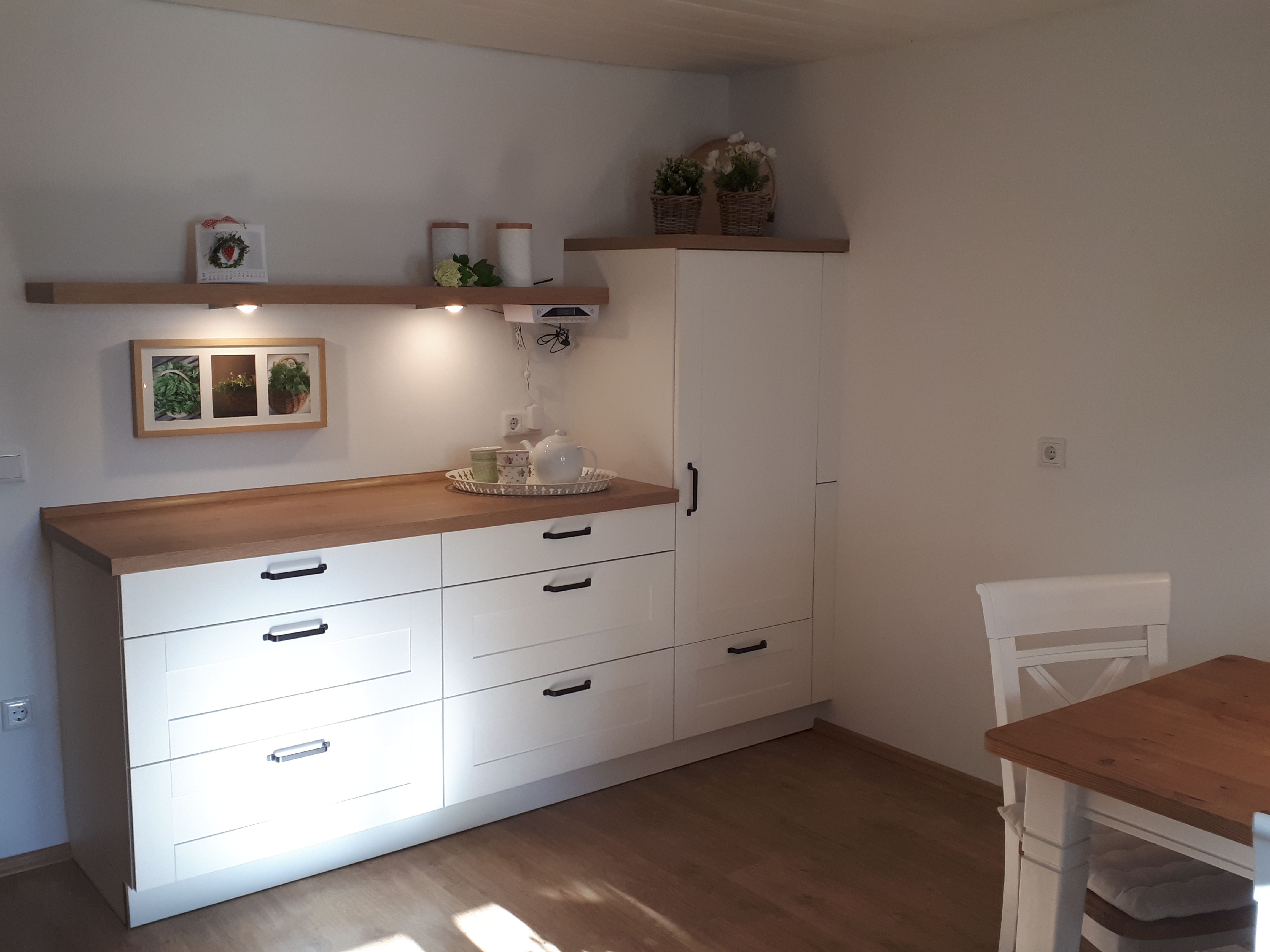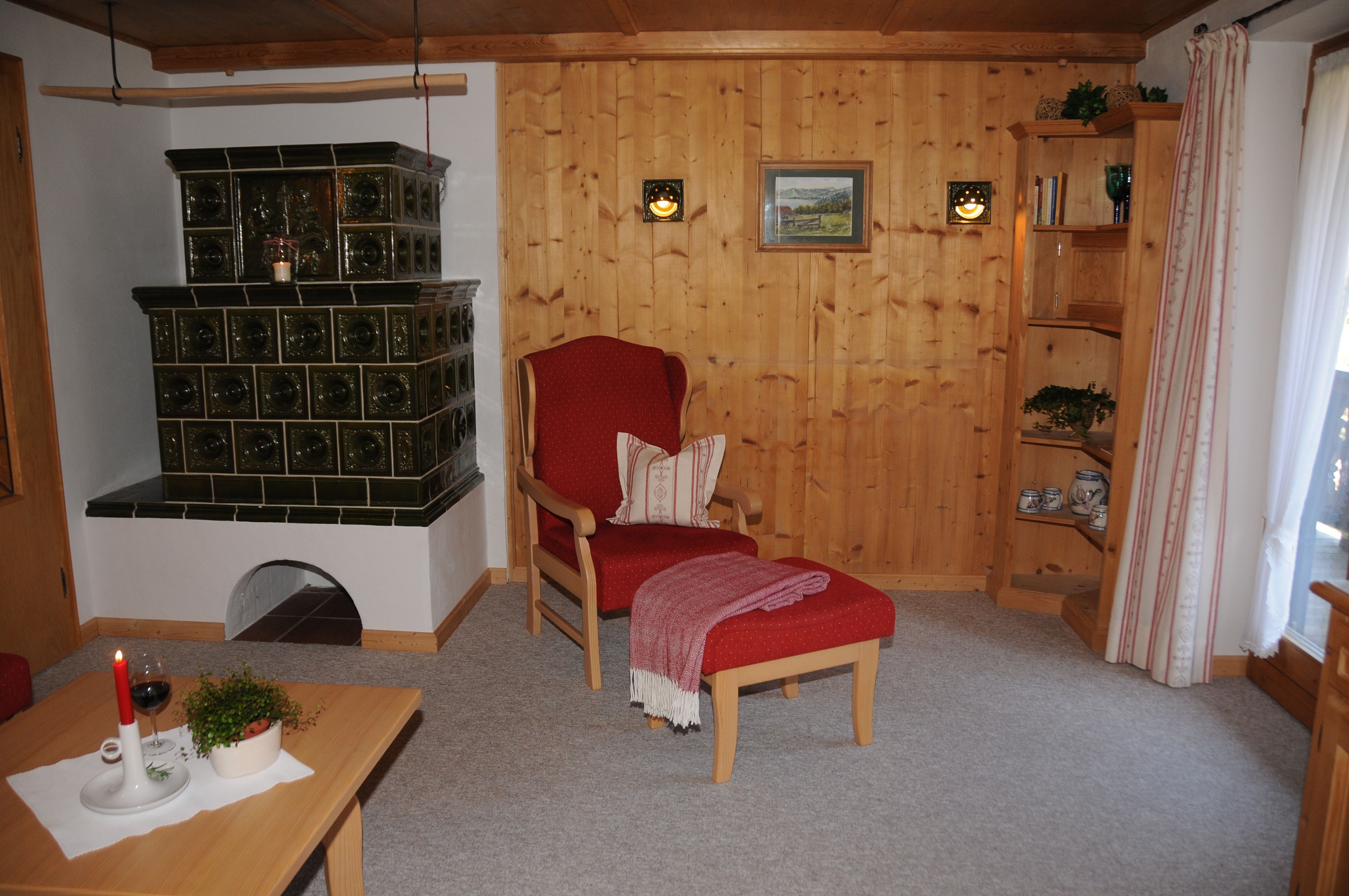 Es ist unsere größte Ferienwohnung und bietet sehr typisches, bayerisches Wohnambiente. Es gibt zwei Schlafzimmer, eines mit Doppelbett, eines mit Einzelbett. In der modern ausgestatteten großen Küche gibt es alles, was man heutzutage braucht (Cerankochfeld, Backofen, Kühlschrank/Gefrierfach, Spülmaschine) und darüber hinaus einen Holzofen, wie man ihn früher in den Bauernhäusern fand. Wer es noch kann, kann auf ihm kochen, wer es nicht mehr kann, nutzt den Ofen als Schüre für den gemütlichen Kachelofen, der das Wohnzimmer nebenan wohlig warm macht. Hier befinden sich ein LCD-Fernseher und ein CD-Radio.