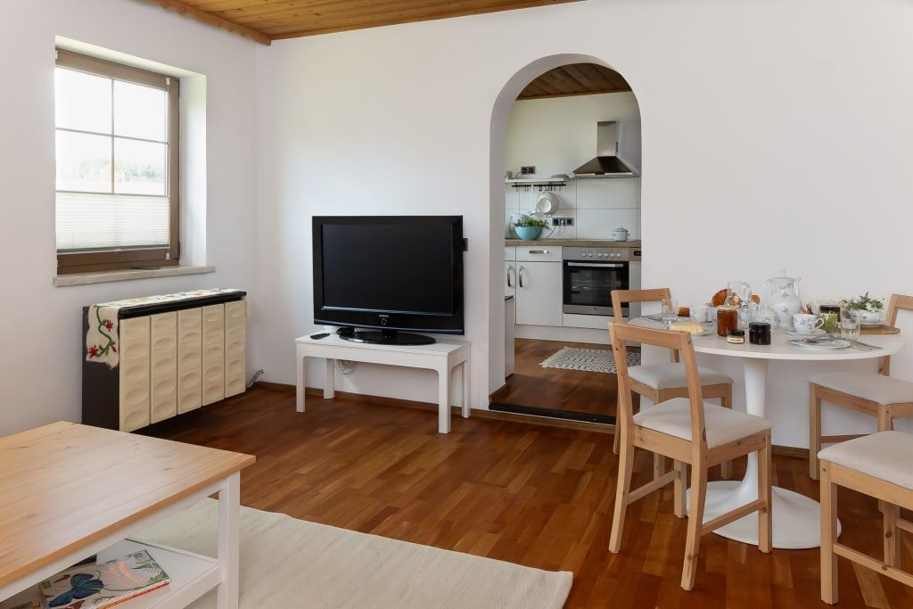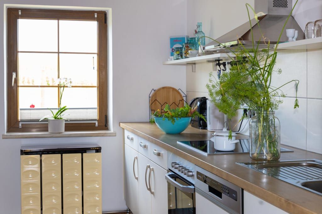 Voll ausgestattete Küche, in der frische Hofprodukte je nach Saison zu kulinarischen Köstlichkeiten verarbeitet werden können.