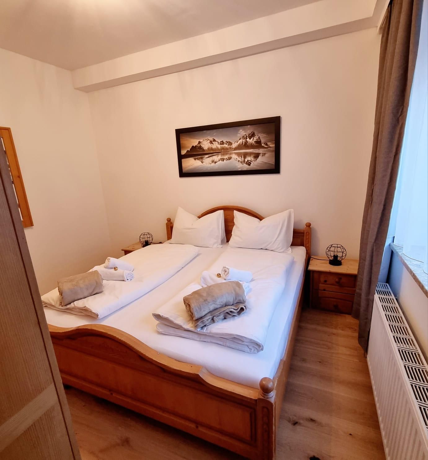 Unsere renovierten Appartements, ideal für Einzelreisende, Paare und Familien, bieten Platz für bis zu 6 Personen. Jedes Appartement verfügt über eine voll ausgestattete Küche, einen Essbereich, ein Bad mit Dusche/WC, Fernseher, WLAN (200 Mbit) und einen gemütlichen Wohnbereich. Entspannen Sie sich auf Ihrem privaten Balkon oder im Garten und genießen Sie die atemberaubende Aussicht. Zusätzlich stehen Ihnen kostenlose Parkplätze, ein Skikeller und einWaschraum mit Waschmaschine und Trockner zur Verfügung.