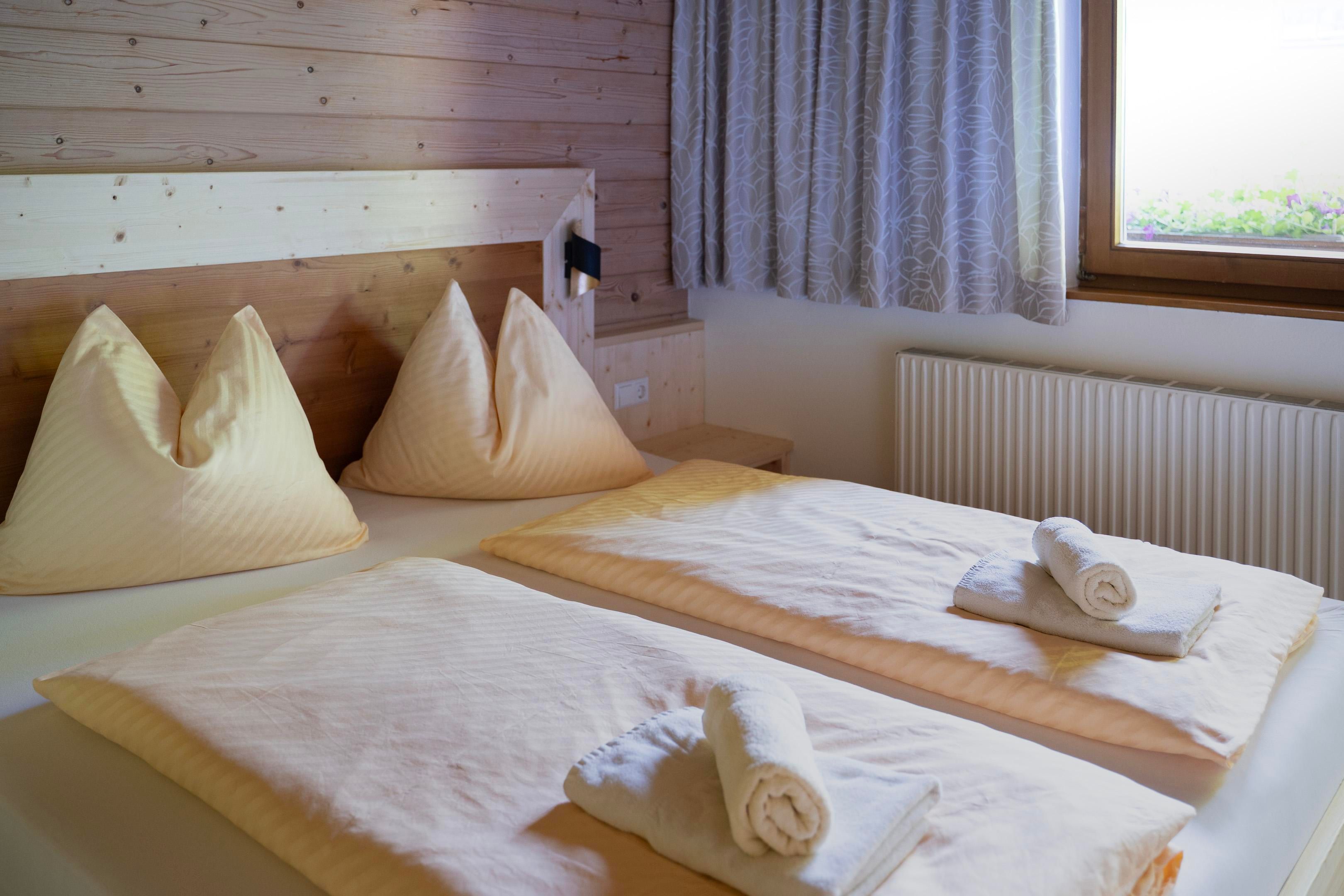 Gemütlich wohnen in Appartements für 2-8 Personen, mit bis zu 3 Schlafzimmern, teilweise mit Kachelofen und Balkon mit Bergblick, gratis Wlan. Im Winter 3x wöchtentlich Saunaabend im Haus. Die zentrale, aber doch ruhige Lage, garantiert eine sehr gute Erreichbarkeit der umliegenden Skigebiete und ist gleichzeitig perfekter Start für Ihre Wanderungen in den Bergen. Unsere Produkte aus der eigenen Landwirtschaft, wie frische Milch, Eier und vieles mehr liefern wir gerne ins Haus.
