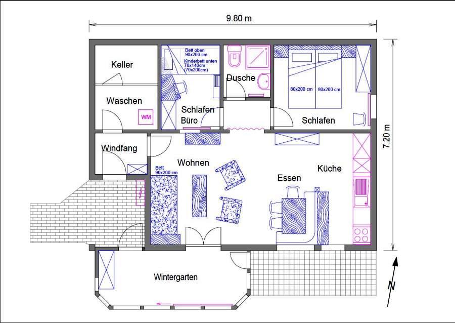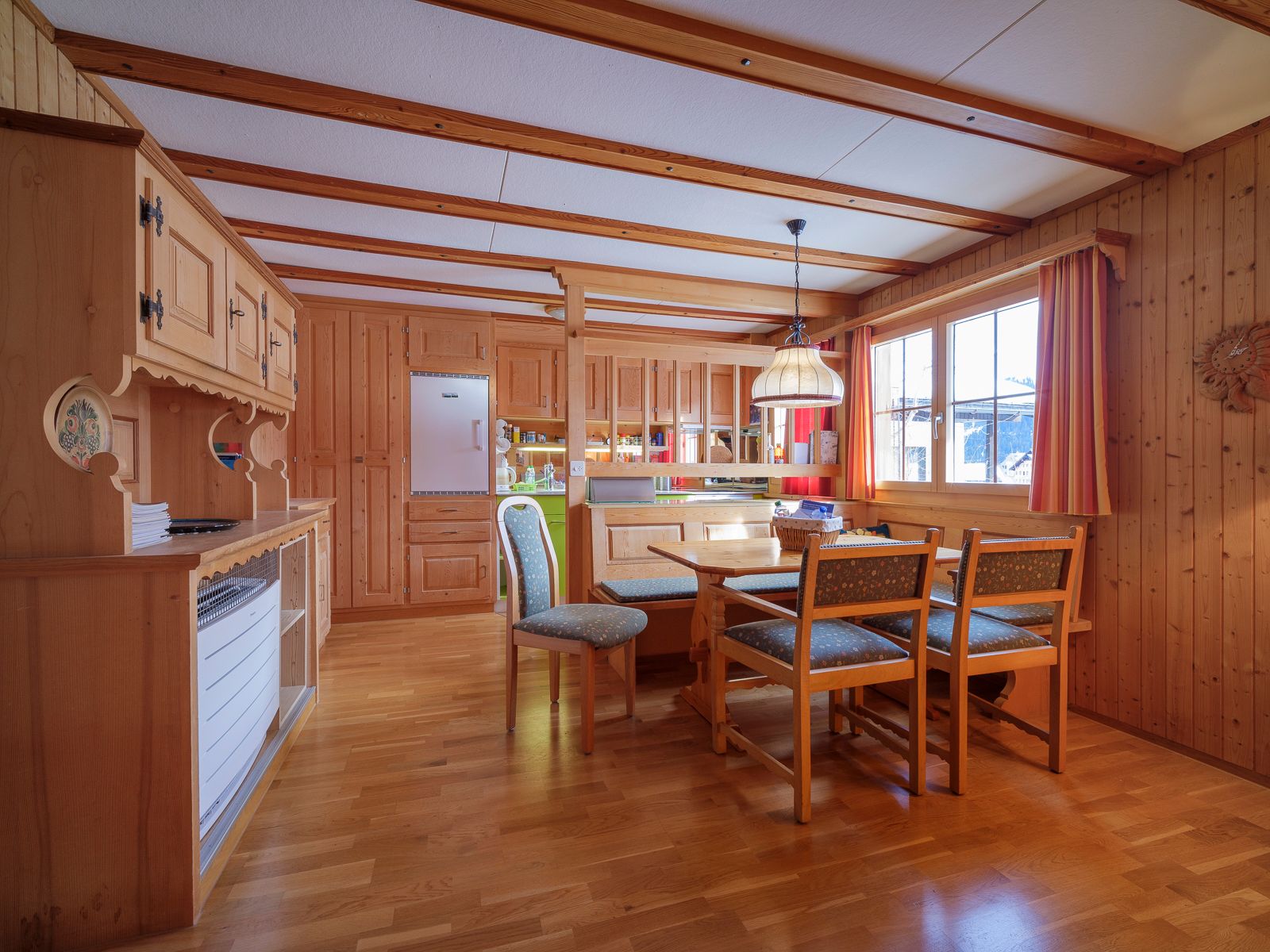3.5-Zimmerwohnung im Untergeschoss mit offener Küche. 3 Kaffeemaschinen (Melitta Filterkaffeemaschine, Brühhebel, Nespresso). Wohnzimmer: Esstisch mit Eckbank und Sitzgruppe mit Sofabett. DAB-Radio mit CD-Player und kassettengerät sowie USB-Anschluss, Fernseher sowie WLAN. 1 Schlafzimmer mit Doppelbett, 1 Schlafzimmer mit Hochbett, darunter Kinderbett. Zweites Bett im Wohnzimmer. Dusche/WC, Haarföhn vorhanden. Gut ausgestattete Küche. Bettwäsche, sowie Küchen- und Badwäsche sind vorhanden. Gartenzimmer und Aussensitzplatz mit Wiese. Elektrospeicherofen, Kinderbett und Kindersitz. Waschmaschine- und Fitnessraum-Mitbenutzung.