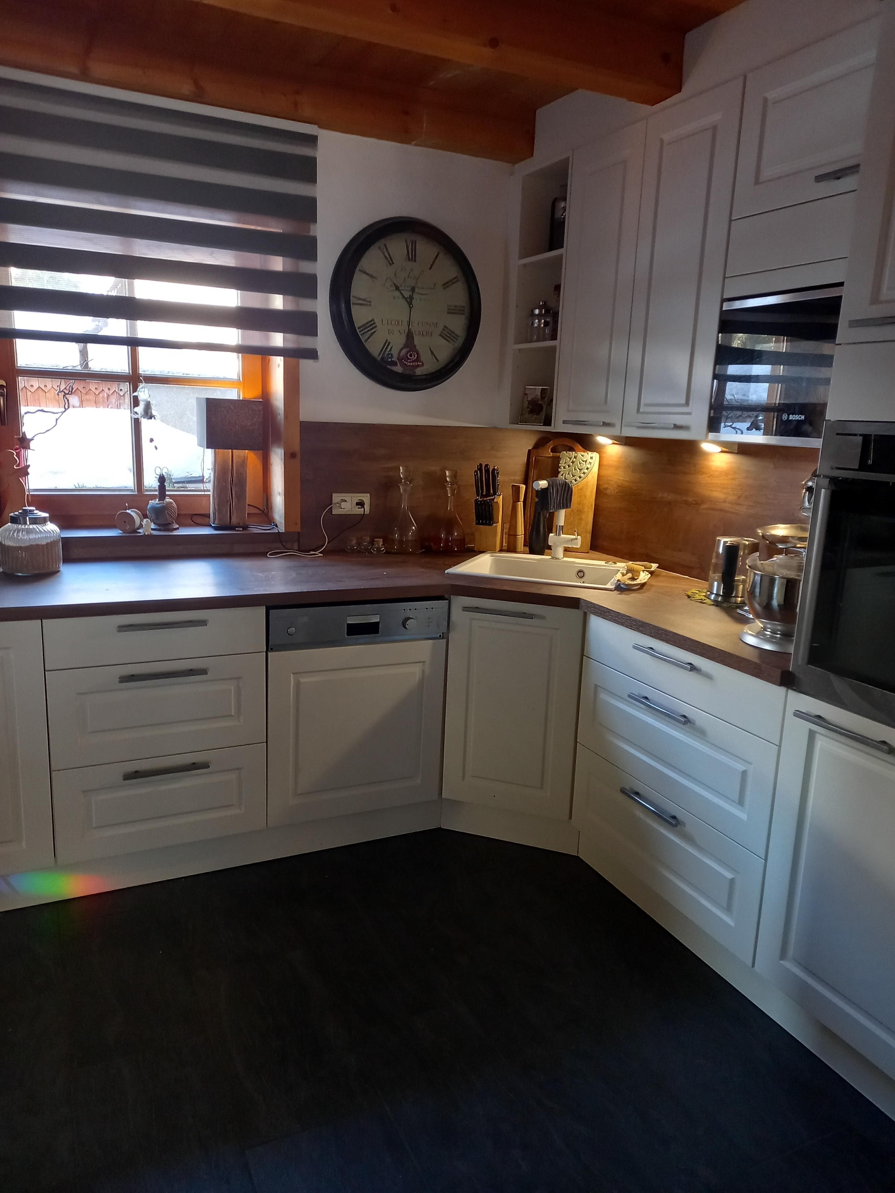 ....bei unserer neu eingebauten Küche macht das Kochen sogar im Urlaub Spass. Ausgestattet mit Backofen (Pyrolysen Funktion), Ceranfeld mit Touch, moderner Mikrowelle, Kaffeemaschine und ein extra Getränke-Kühlschrank. Spülmittel und Geschirrhandtücher gehören zur Ausstattung sowie Töpfe, Schüsseln, Geschirr, Besteck und Gläser. Unsere Betten sind immer frisch für sie überzogen und im Badezimmer sind Handtücher und Föhn für Sie bereit. Wir haben WLan und Satelliten TV. Für die vierbeinigen Lieblinge gibt es Wasserschüssel und Fressnapf.