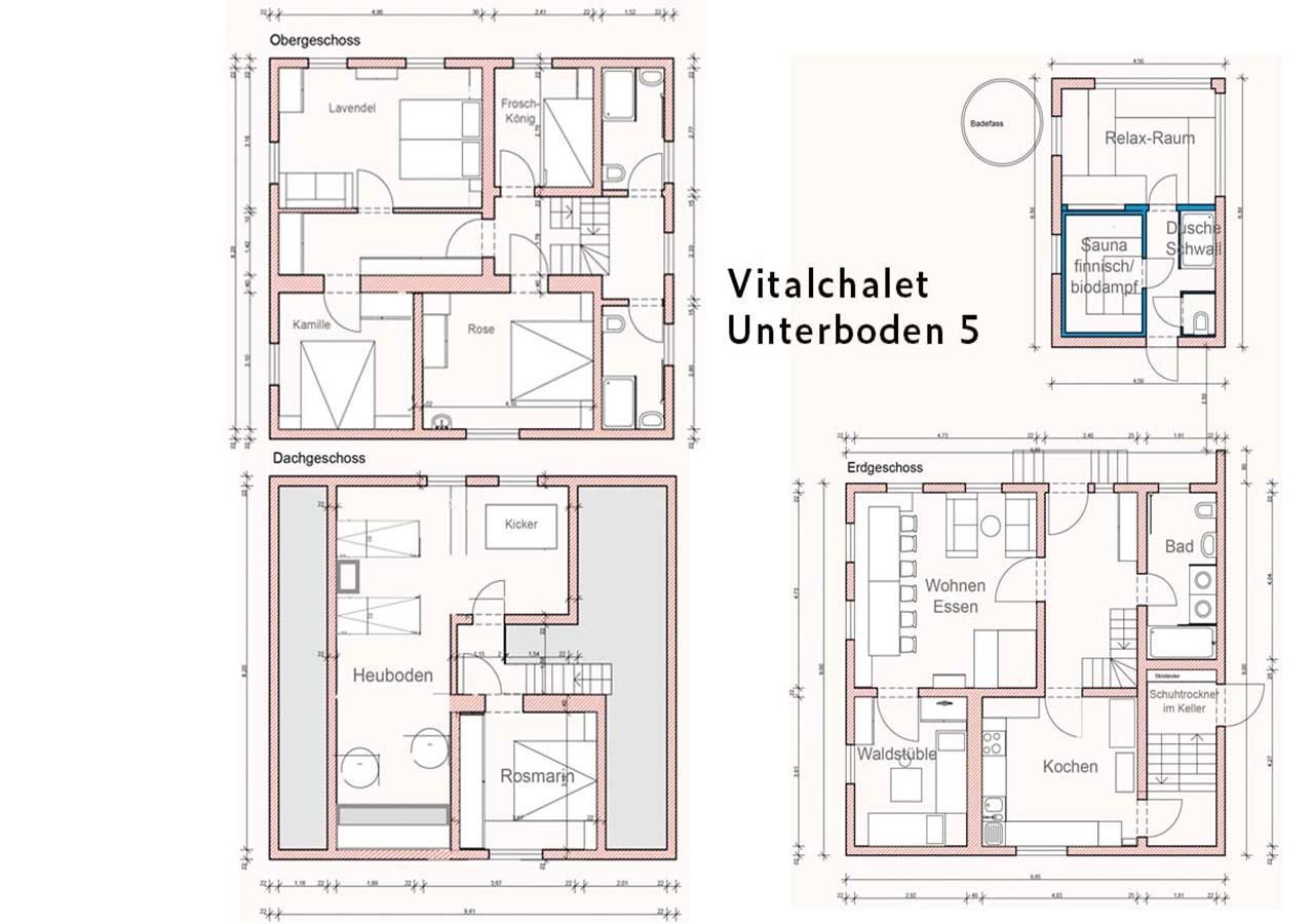 Unterboden 5 ist eine wunderschöne Hütte mit 5-7 Schlafzimmern (250 m²) für maximal 16 Personen.