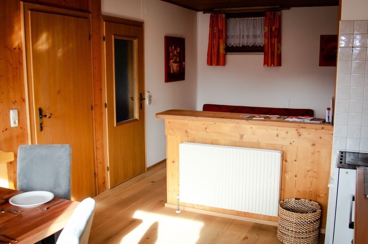 Gemütliche Wohnküche mit Holzherd & Elektroherd (Backofen), Kühlschrank mit Gefrierfach, Geschirrspüler, Mikrowelle, Kaffeemaschine, Toaster, Esstisch mit Eckbank