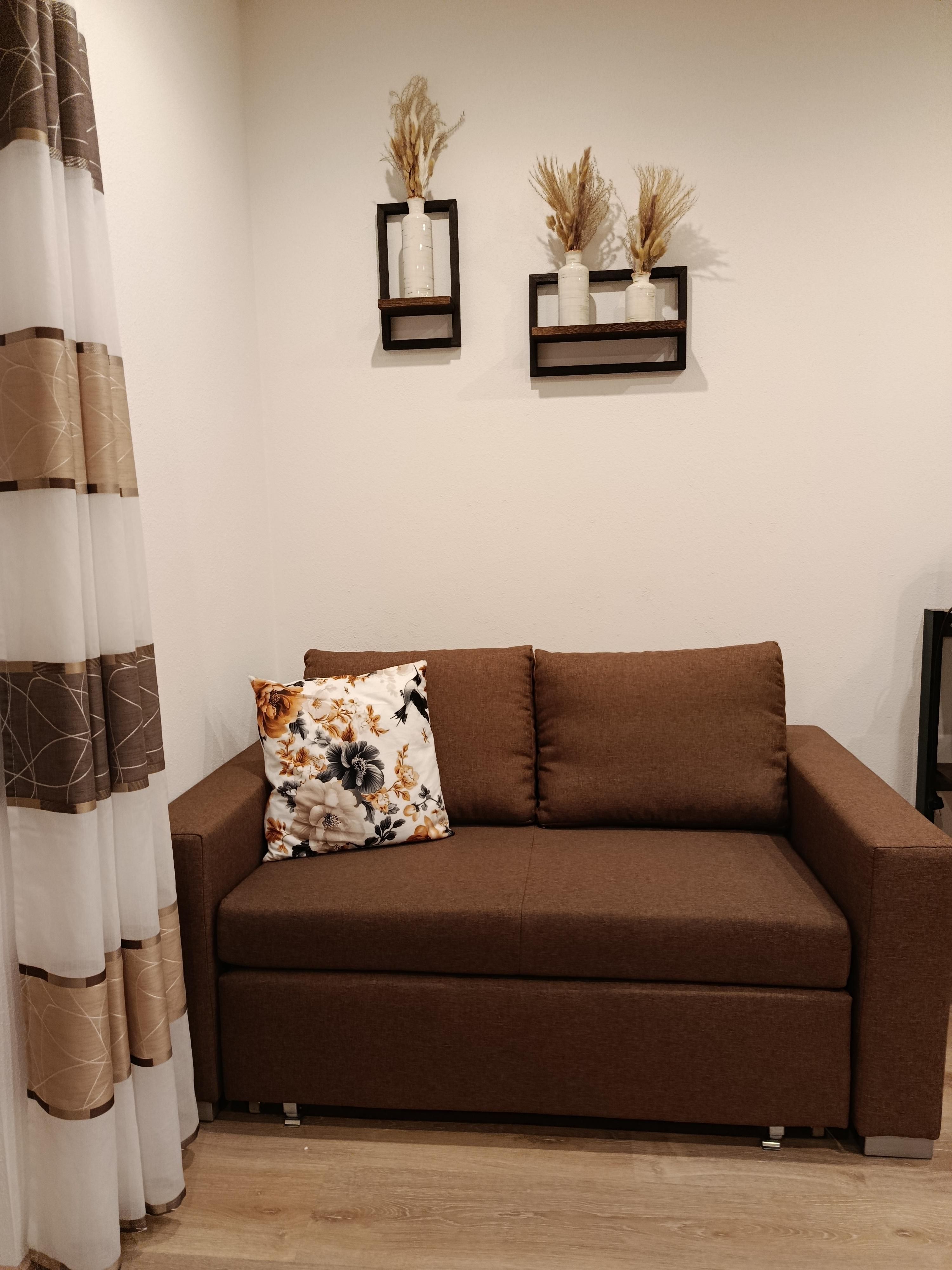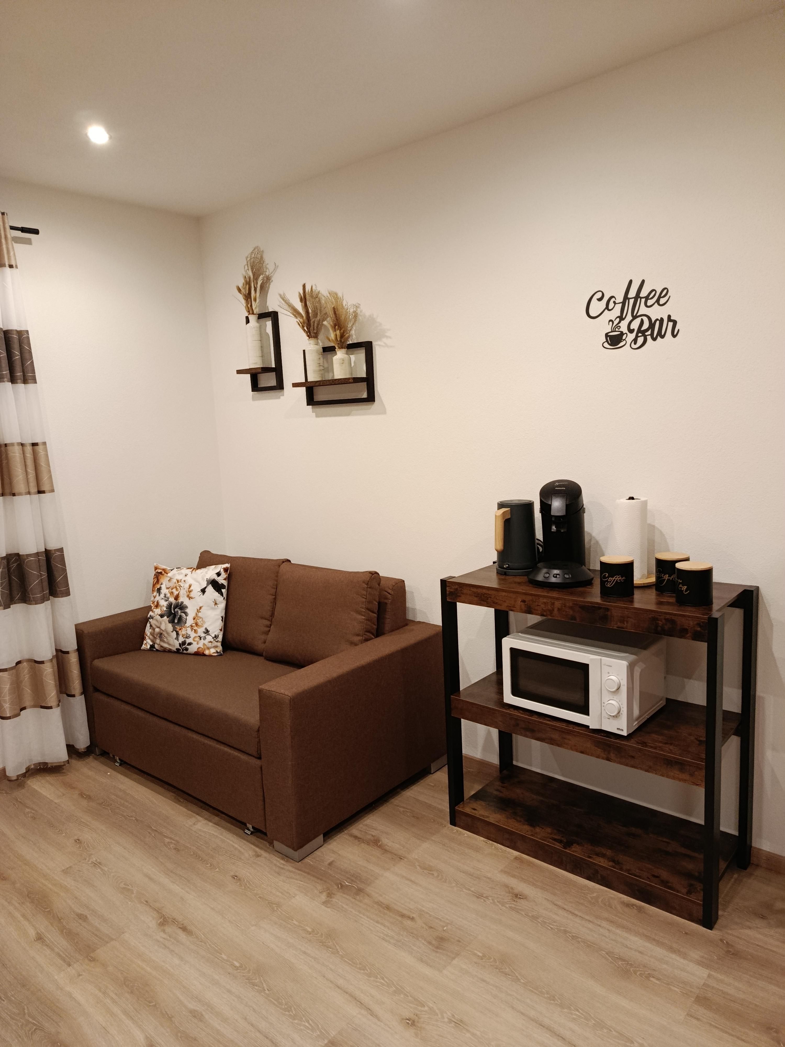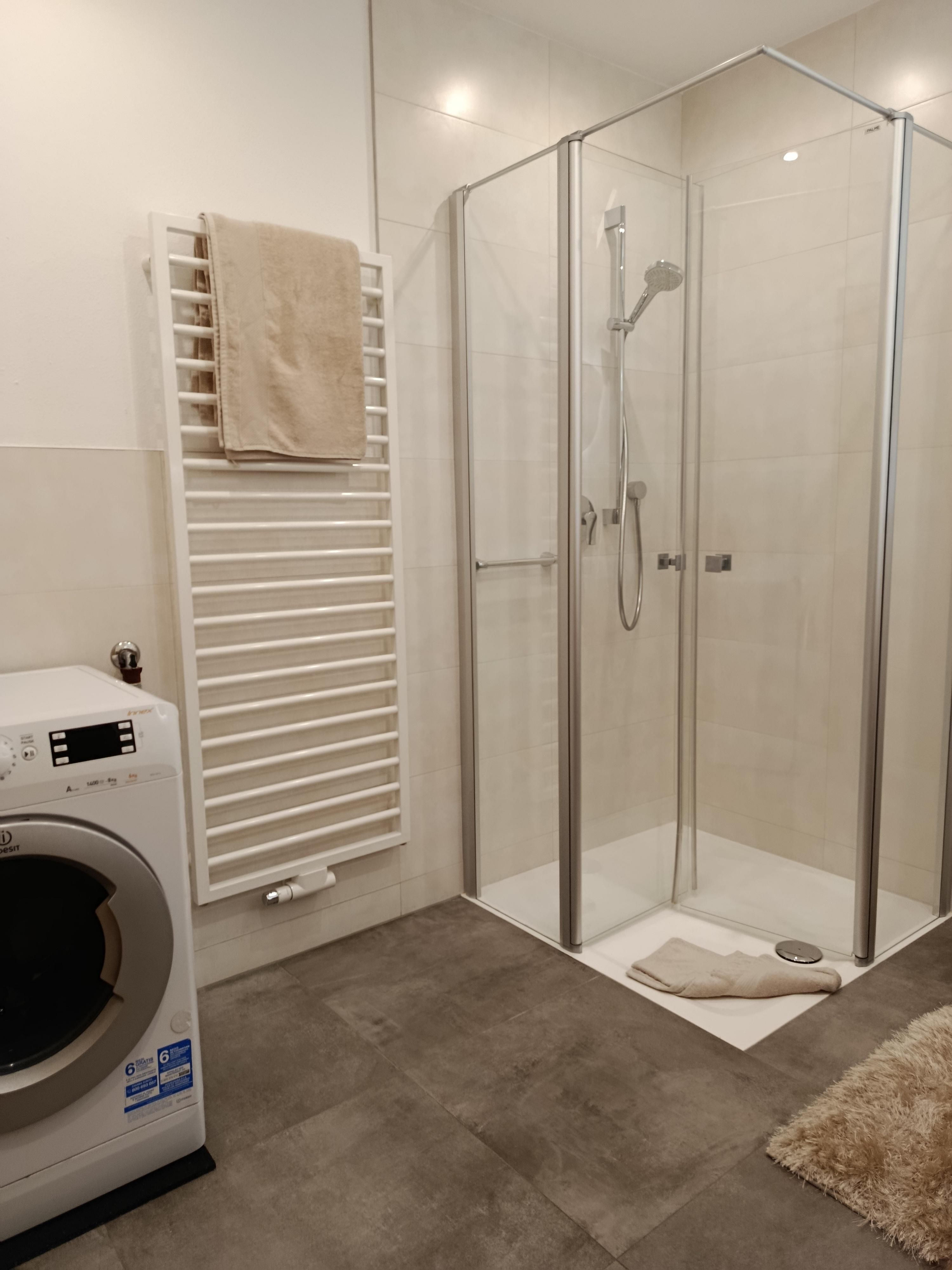 Die vollausgestattete Küche umfasst eine moderne Kaffeemaschine, die es Ihnen ermöglicht, frisch gebrühten Kaffee zu genießen – der perfekte Start in den Tag! Das Badezimmer ist mit einer Dusche sowie einer Waschmaschine ausgestattet. Zusätzlich gibt es ein separates WC für noch mehr Komfort.