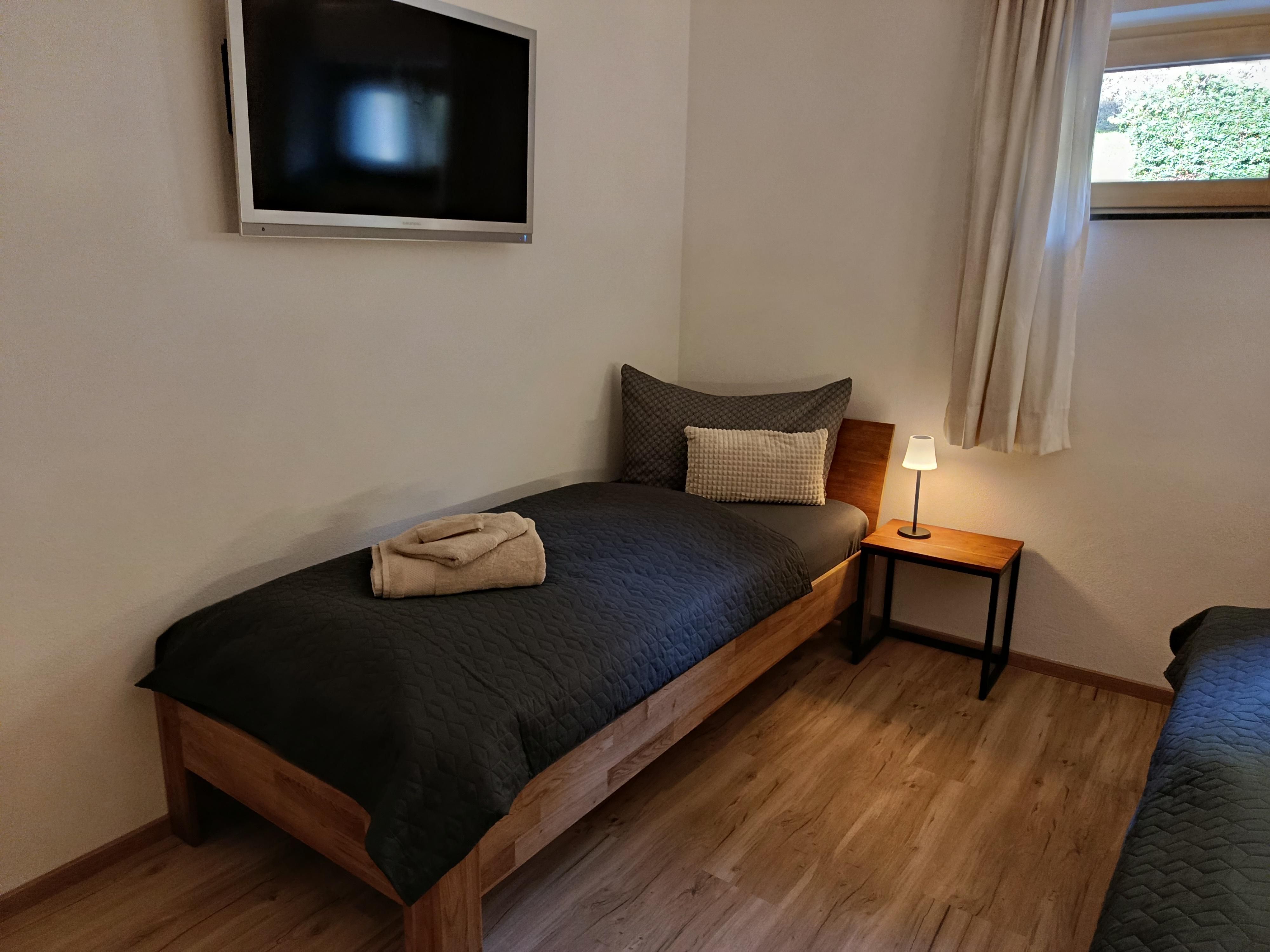 Schlafzimmer 2 bietet 1 Doppelbett und 1 Einzelbetten und eignet sich somit hervorragend für Kinder oder Freunde.