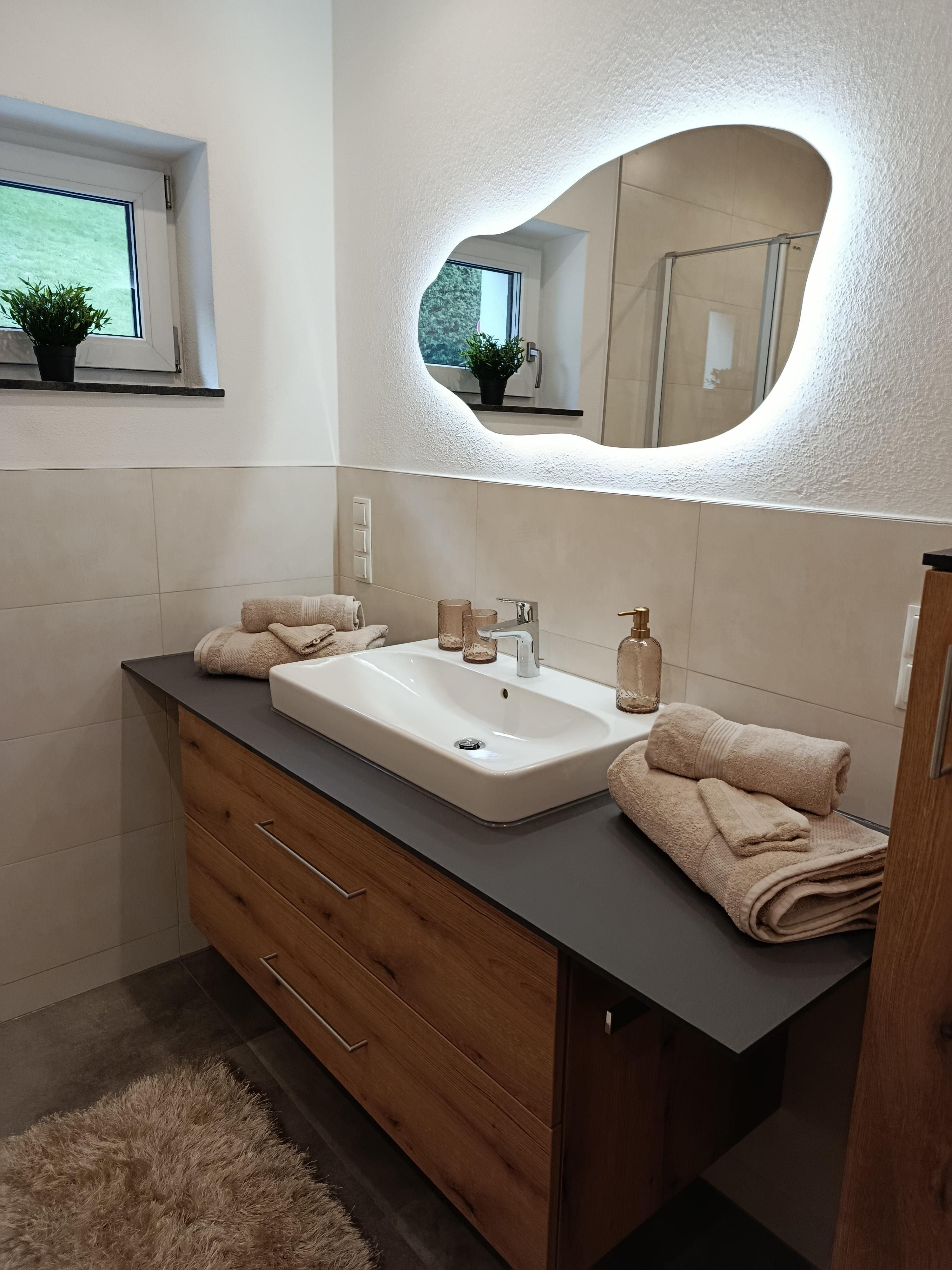Besonders hervorzuheben ist die großzügige Terrasse, die zum Entspannen und Verweilen einlädt. Genießen Sie den atemberaubenden Blick auf die umliegenden Berge, während Sie in der Sonne entspannen oder abends bei einem Glas Wein den Sonnenuntergang beobachten.