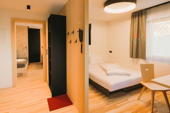 In den Sommermonaten 2020 & 2021 hat sich viel getan, denn unser ehemaliges und beliebtes Kleine Alpin***Hotel garni wurde von grundauf saniert. „Vieles können, nichts müssen“ lautet die Devise in unserem neuen Alpin und soll Euch als Gast vermitteln, dass es bei uns ziemlich unkompliziert und easy abläuft. Die neuen Doppel- und Familienstudios, ausgestattet mit Kitchenetten, laden dazu ein, kleine Gerichte zu kochen oder Speisen aus unserem Genusskühlschrank zu erwärmen. Bei der Einrichtung unserer Studios & Suites haben wir viel Wert auf Natürlichkeit sowie den Baustoff Holz gelegt. Gemütlichkeit gepaart mit Funktionalität war uns wichtig, das helle Eschenholz sorgt sogleich für eine freundliche Atmosphäre. Highlight ist unser neuer Wellnessbereich mit einem Indoor-Erlebnispool mit Liegebereich, einem neuen Saunabereich mit finnischer Sauna, Infrarotkabine und Kräuterdampfbad sowie einem Ruheraum und Frischluftbereich.