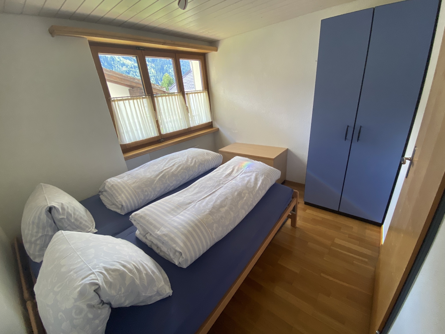 Schlafzimmer: 2 Schlafzimmer: In einem Schlafzimmer befindet sich ein frazösisches Bett und im anderen Schlafzimmer zwei Einzelbetten (Ausziehbett). Beide Schlafzimmer verfügen über einen Kleiderschrank und/oder einer Kleiderkommode. Die Betten sind bei Ankunft bezogen. Laminatboden.
