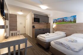 Unser Selbstversorgerhotel bietet gemütliche Doppelzimmer mit eigener Küche und Bad sowie ein Einzelzimmer als ruhigen Rückzugsort – ohne Küche. Alle Zimmer verfügen über einen großen Fernseher, kostenfreies WLAN und einen festen Internetanschluss. Mit bis zu 1000 Mbit/s eignet sich unser Hotel ideal für Homeoffice. Einkaufsmöglichkeiten wie ALDI und EDEKA sind nur 500 m entfernt, eine Metzgerei erreichen Sie nach 800 m. Kostenlose Parkplätze direkt am Haus sorgen für zusätzlichen Komfort. Genießen Sie Flexibilität, moderne Ausstattung und eine angenehme Atmosphäre – perfekt für Urlaub oder beruflichen Aufenthalt.