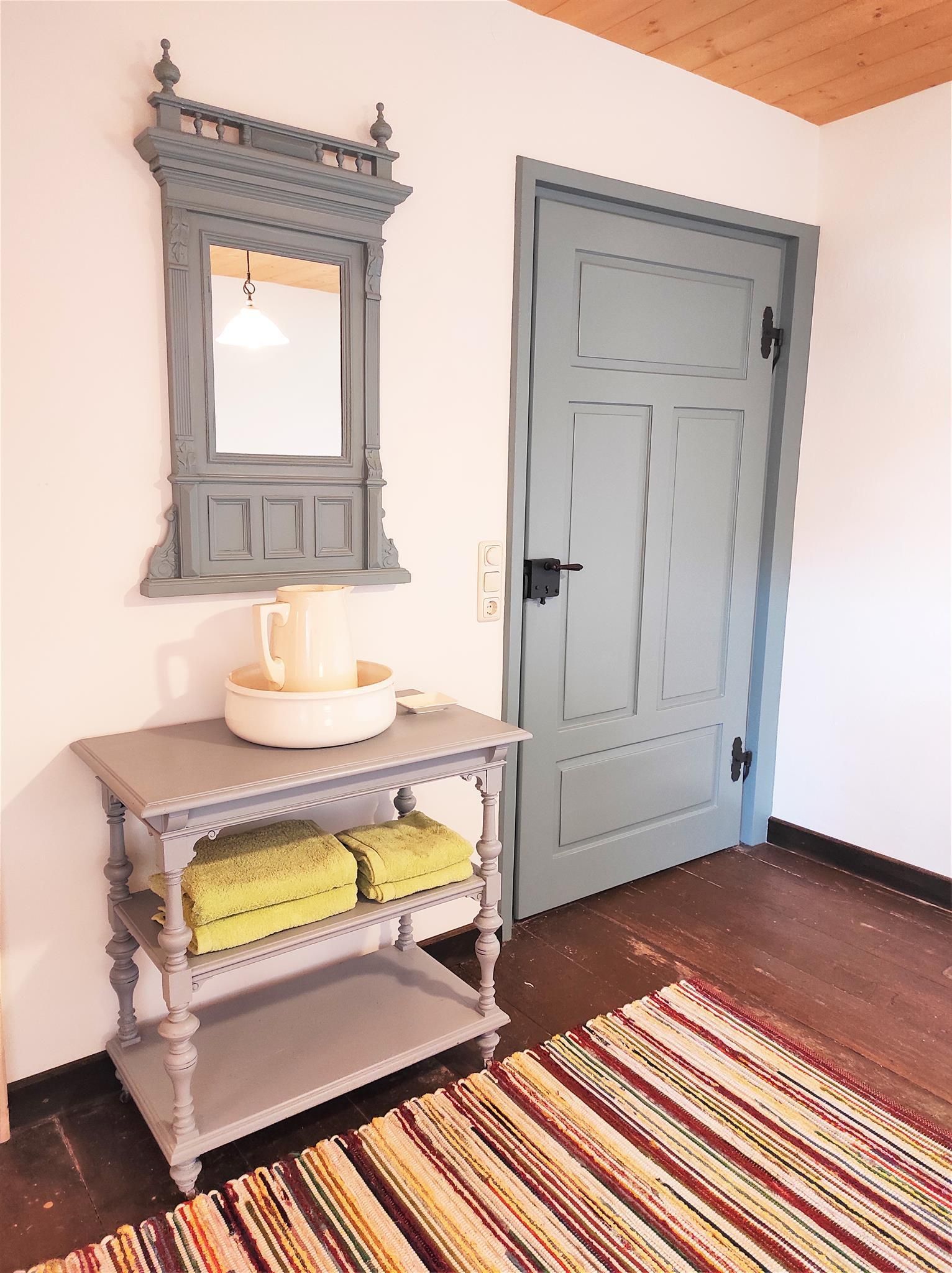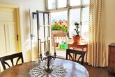 Vermietet wird hier eine Einheit von zwei Doppelzimmern für 1-4 Personen mit einem Badezimmer, das gemeinsam benutzt wird. Das neu gestaltete, helle Tageslicht-Bad (7m²) verfügt über WC, Dusche, Waschtisch und Handtuchtrockner. Erreichbar ist dieses über den Gang. Weiter steht Ihnen auf der Etage ein Aufenthaltsraum (16m²) im „Biedermeier-Stil“, ein separates Fernsehzimmer (19m²) und ein Balkon zur alleinigen Nutzung zur Verfügung. WLAN vorhanden.