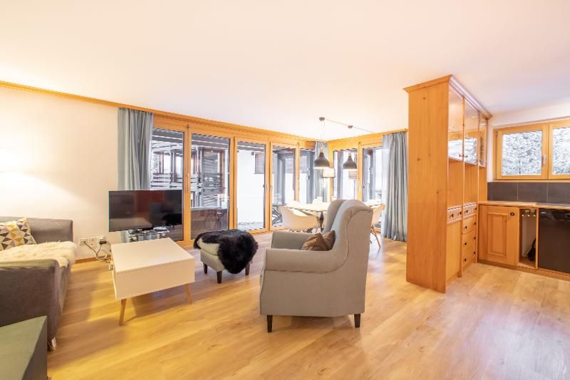 In der hellen Wohnung finden auf 85m2 bis zu 5 Gäste Platz. Sie überzeugt mit einem hellen und gemütlichen Wohn- und Essbereich und einem sonnigen Gartensitzplatz. Die Küche ist offen und voll ausgestattet mit Kühlschrank, Backofen, Geschirrspülmaschine, Kaffeemaschine, Toaster, Wasserkocher und diversen Küchenutensilien.
