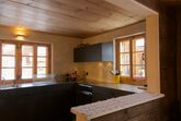 Moderne Küche, Badezimmer mit Dusche/WC. Drei Schlafzimmer im Obergeschoss: Ein Schlafzimmer mit Doppelbett und Kinderbett, ein Zimmer mit Kajütenbett und eines mit zwei Einzelbetten (tiefe Decke). Bodenbelag im Wohnbereich: Holz. Schlafzimmer: Teppiche aus Ziegenhaar. Reichhaltige Küchenausstattung: Geschirrspüler, Kaffeemaschine, Fondue-Caquelon, Racelette-Ofen, Wasserkocher etc.