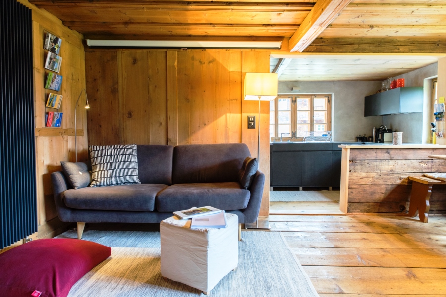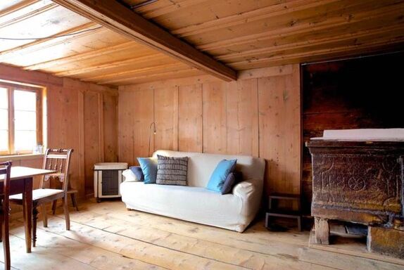 Gemütliche Ferienwohnung in einem 200-jährigen, denkmalgeschützten Walserhaus an ruhiger Lage. Die sorgfältig restaurierte Wohnung bietet auf 100 m2 viel Platz für sechs Personen. Alt und Neu ergänzen sich harmonisch: Erdgeschoss mit originalen Täferwänden und Specksteinofen, moderne Küche und modernes Bad.