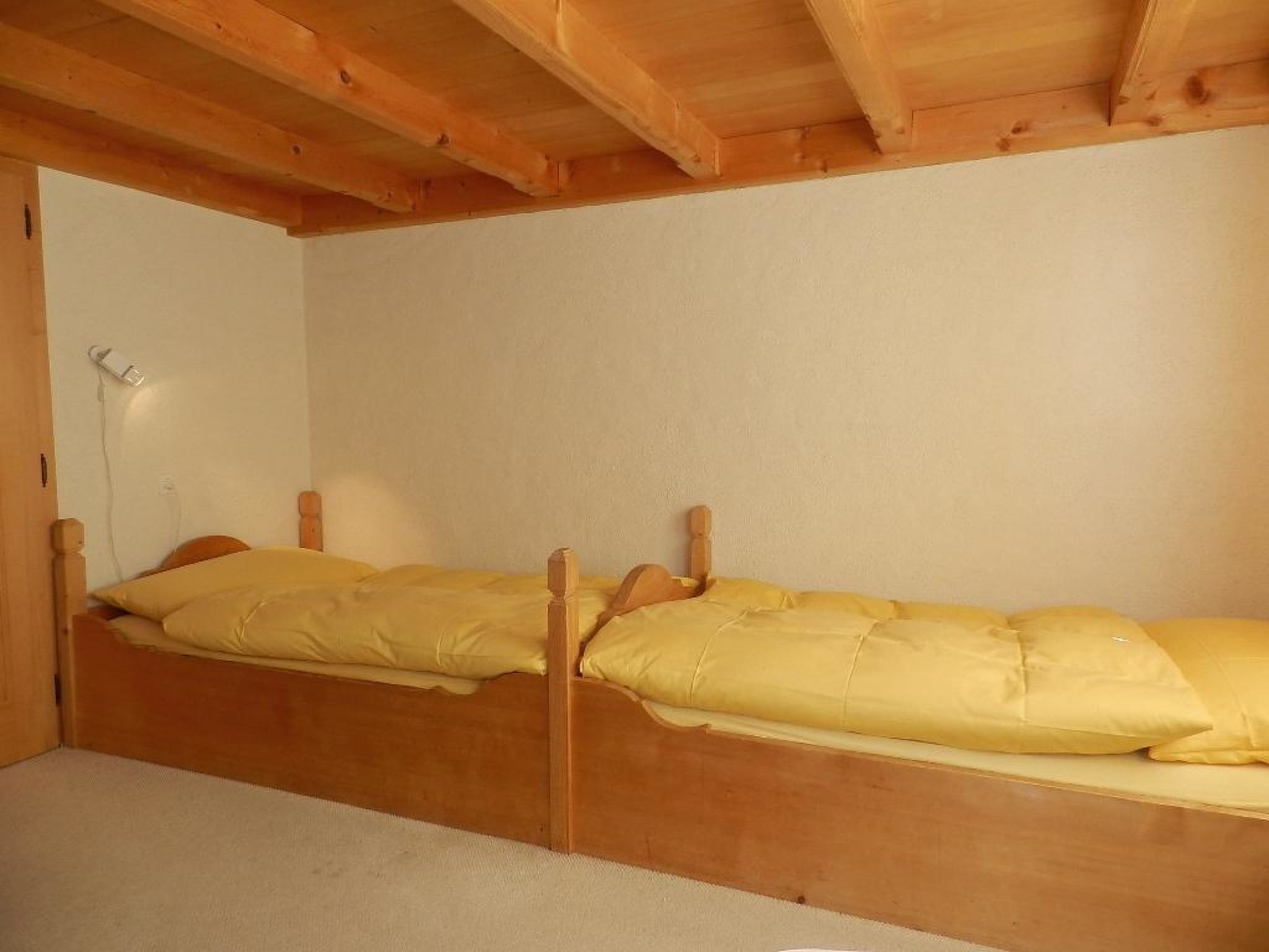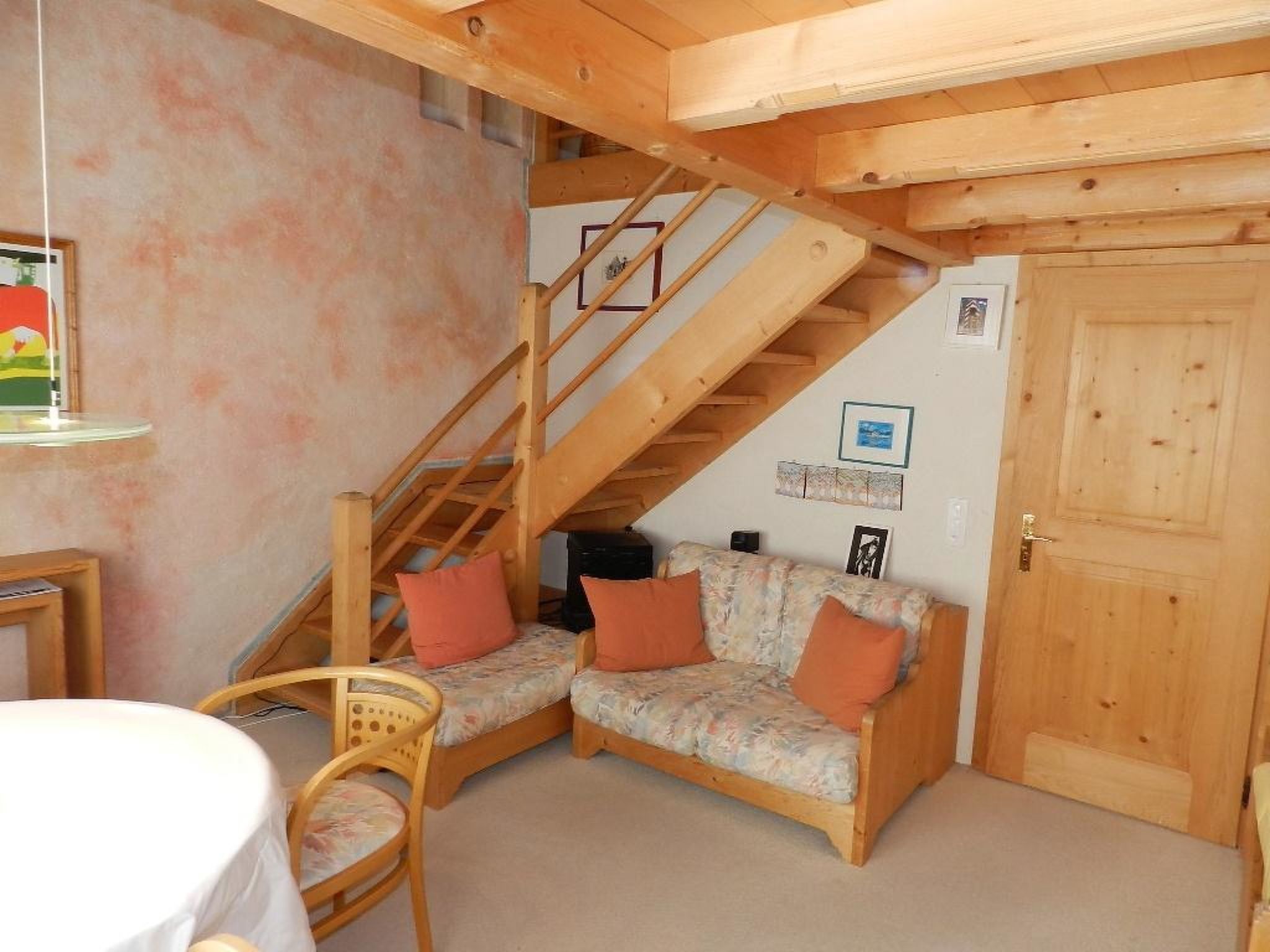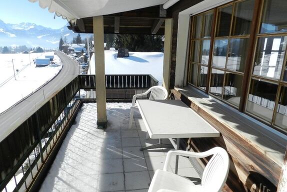 100 m2. Weitere Angaben des Anbieters: Grosse 3.5-Zimmer-Dachwohnung (100m2) mit 2 Balkonen im 2. Stock eines 1963 erbauten Mehrfamilienhauses. Die Wohnung verfügt über 2 Balkone. Unweit der Ski- und Langlaufpisten von Saanenmöser. Zentral gelegen, jedoch an der Hauptstrasse (Lärmemission). Zugang zur Wohnung ist nur via eine Treppe möglich. 500 m bis ins Dorfzentrum von Saanenmöser. 1 Garage (2. von links) und 1 davor liegender offener Parkplatz stehen zur Verfügung. Waschmaschine und Wäschetrockner zur gemeinschaftlichen Benutzung in der Liegenschaft. -> Wichtige Information: Die Ferienwohnung verfügt über eine Galerie mit einem niedrigen Geländer. Kinder dürfen die Galerie nur in Begleitung eines Erwachsenen betreten. Die Treppe zur Galerie kann mit einem Treppen-Schutzgitter abgesperrt werden. Jegliche Haftung bei einem Unfall wird seitens Gstaad Saanenland Tourismus und seitens des Eigentümers abgelehnt! Wohn-/Esszimmer mit offener Küche (u. a. ausgestattet mit Kapsel-Kaffeemaschine (Nespresso), Fondue- und Raclette-Set) , Esstisch, Cheminée und Sitzgruppe. 1 Schlafzimmer mit 2 zusammengeschobenen Einzelbetten (2x90x200cm). 1 Schlafzimmer mit 2 Einzelbetten (2x90x190cm), rundem Tisch, kleinem Sofa, TV und Galerie mit 2 weiteren Einzelbetten (2x90x190cm). 1 Badezimmer mit Badewanne/WC. WiFi. INKLUSIVE: Elektrizität, Heizung, Wasser, Garage (2. von links), 1 offener Parkplatz, Cheminéeholz, Waschmaschine, Wäschetrockner, WiFi, Bett-, Küchen- und Badezimmerwäsche (Erstausstattung) sowie Endreinigung und Kurtaxen. EXKLUSIVE: Kapseln für die Kaffeemaschine (Nespresso). Telefongesprächstaxen. ***Haustiere nicht erlaubt***.
