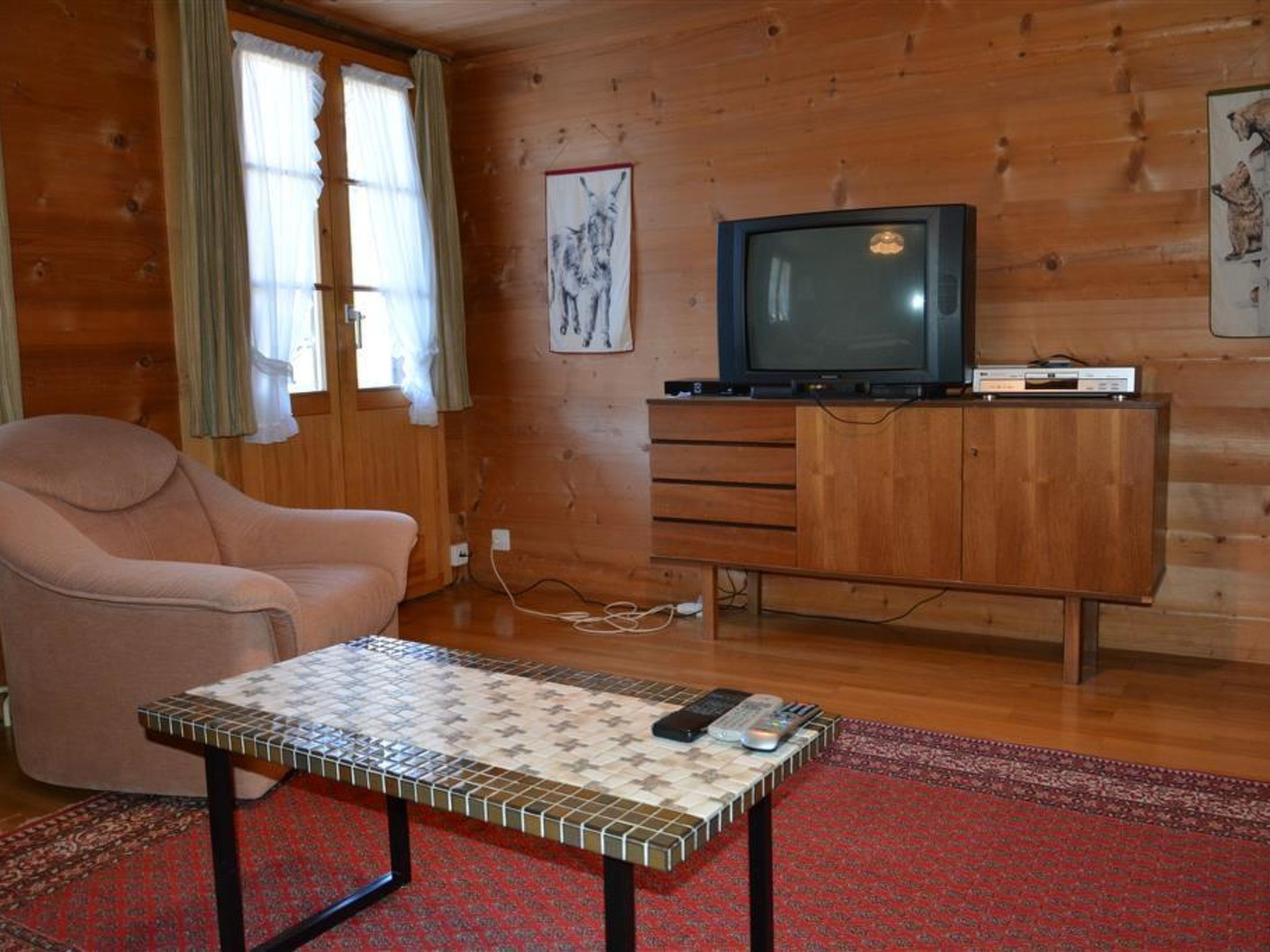 110 m2. Weitere Angaben des Anbieters: 5-Zimmerwohnung (110m2) im 2. Stock eines 1954 erbauten Mehrfamilienhauses. Ruhige zentrale Lage mit schöner Aussicht auf die Berge. Unweit der Langlaufloipen. Wohnzimmer mit Bettsofa (140x190cm), 2 Sessel, TV mit DVD, Telefon. 3 Doppelschlafzimmer mit je 2 Betten (2x90x190cm). 1 Schlafzimmer mit 1 Bett (90x190cm). Grosse Wohnküche mit Herd, Backofen, Mikrowelle und Fondue- / Raclette-Set. Essecke. Badezimmer mit Dusche/WC. Grosser Eingang. Kinderbett (60x120cm) inkl. Bettwäsche vorhanden. INKLUSIVE: Elektrizität, Heizung (Öl- und Holzofen in Küche), Wasser, WiFi, Parkplatz, Garage, Kinderbett (60x120cm) inkl. Bettwäsche, Bett-, Küchen- und Badezimmerwäsche (Erstausstattung) sowie Endreinigung und Kurtaxen. EXKLUSIVE: Telefongesprächstaxen. ***Haustiere willkommen*** Wichtig: In den meisten Ferienwohnungen ist nur ein Haustier (in der Regel ein Hund) erlaubt. Weitere bzw. andere Haustiere müssen vor der Buchung angefragt werden.