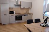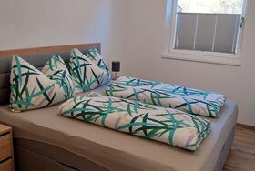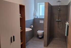 Unser Appartement (ca. 55m²) besteht aus zwei Doppelzimmern, einem Badezimmer mit Dusche und WC und einer vollausgestatteten Küche (Backrohr, Kühlschrank) mit Esstisch.