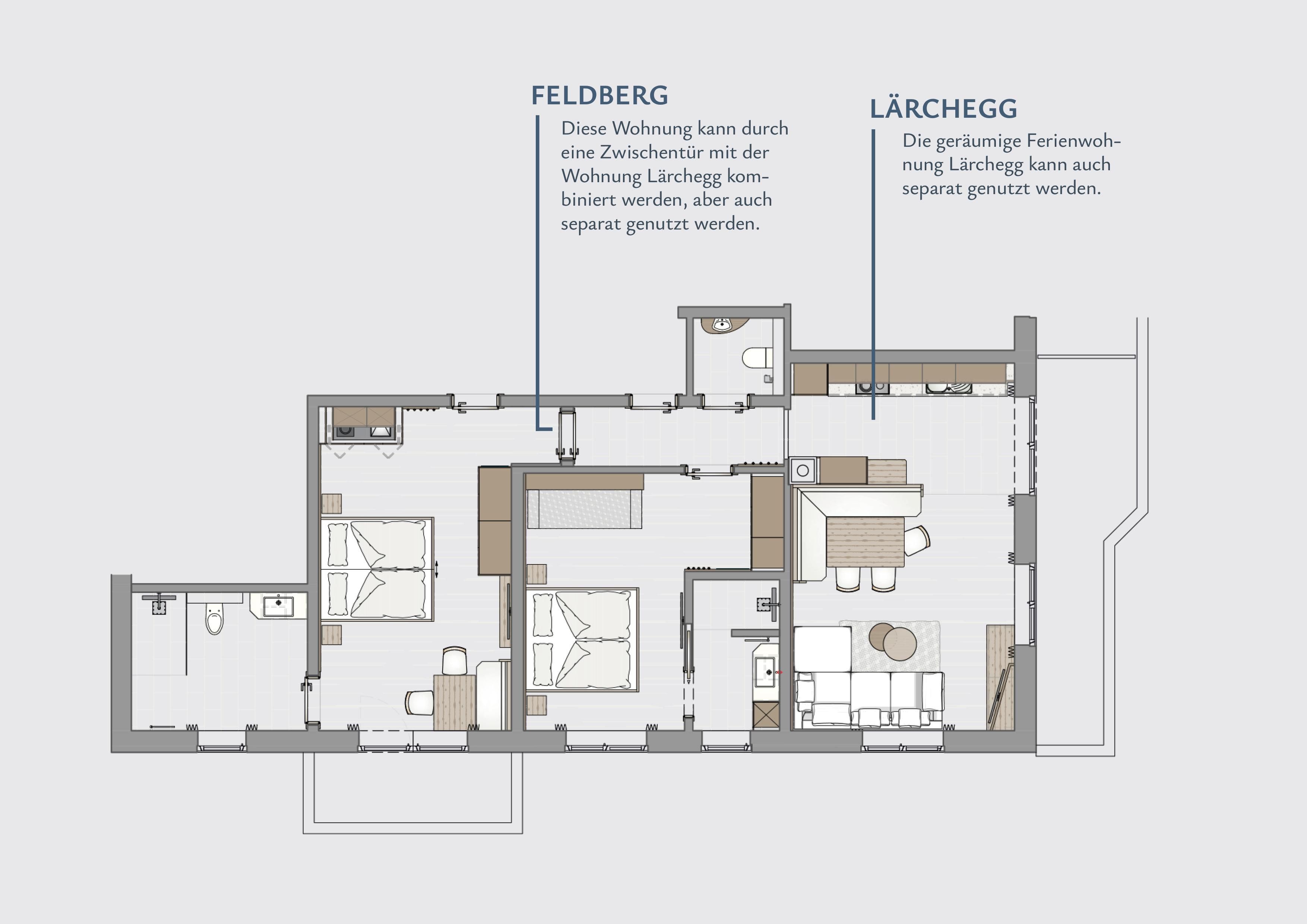 Mix & Match Diese Wohnung ist für bis zu 6 Personen durch Erweiterung mit Wohnung Feldberg möglich. Sprechen Sie uns gerne an.