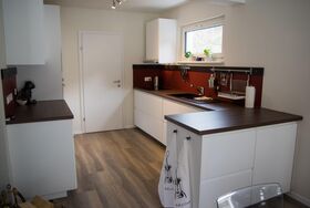 großen Wohnraum mit Couch & TV, Essecke, voll ausgestatteter Küche (Kaffeemaschine mit Filter, Herd, Backofen, Mikrowelle, Kühlschrank mit Gefrierfach, Geschirrspüler), Dusche/WC, extra WC mit Schuhtrockner, Haushaltsraum mit Waschmaschine, Staubsauger, Parkplatz, freies Wlan und SAUNA.