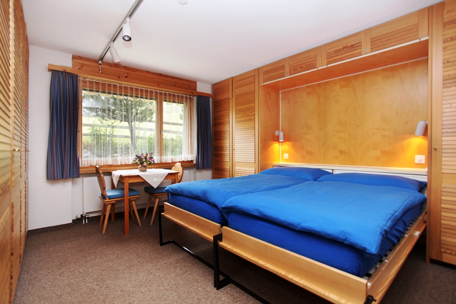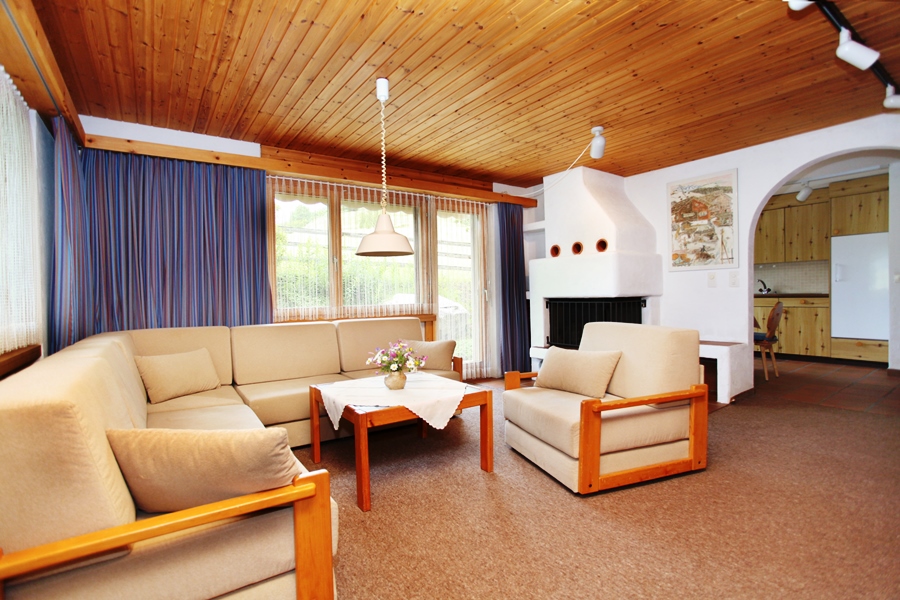 2.5 Zimmer-Wohnung im Parterre. Wohnzimmer mit Sofabett + Wohnwand mit 2 Klappbetten, Küche mit Essecke, zum Wohnraum nicht abgeschlossen.1 Schlafzimmer mit 2 Betten. Badzimmer mit Badewanne/WC und Doppellavabo. Radio/TV, Waschmaschine und Tumbler, Fonduecaquelon und Racletteofen vorhanden. Nichtraucher-Wohnung.