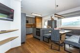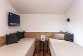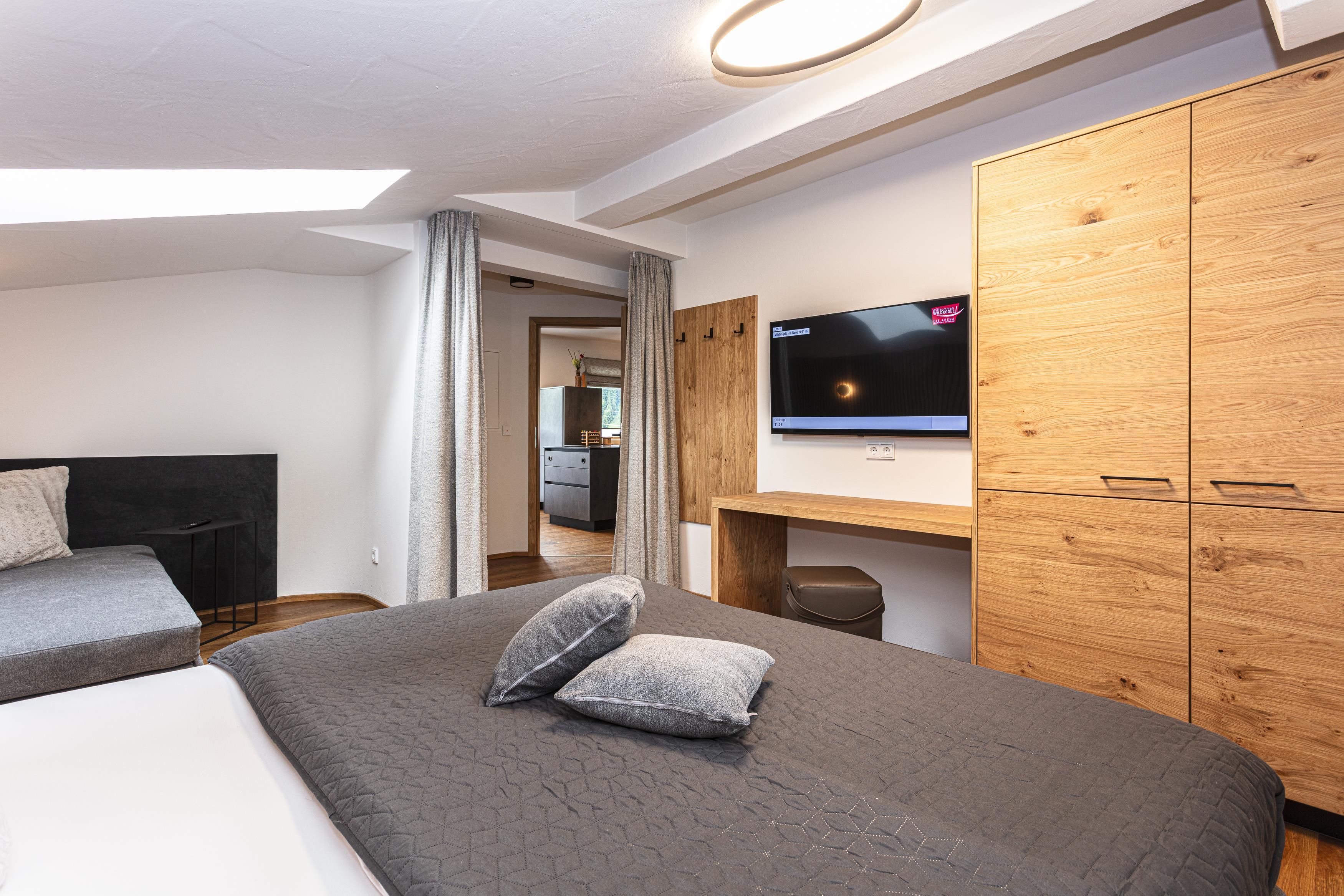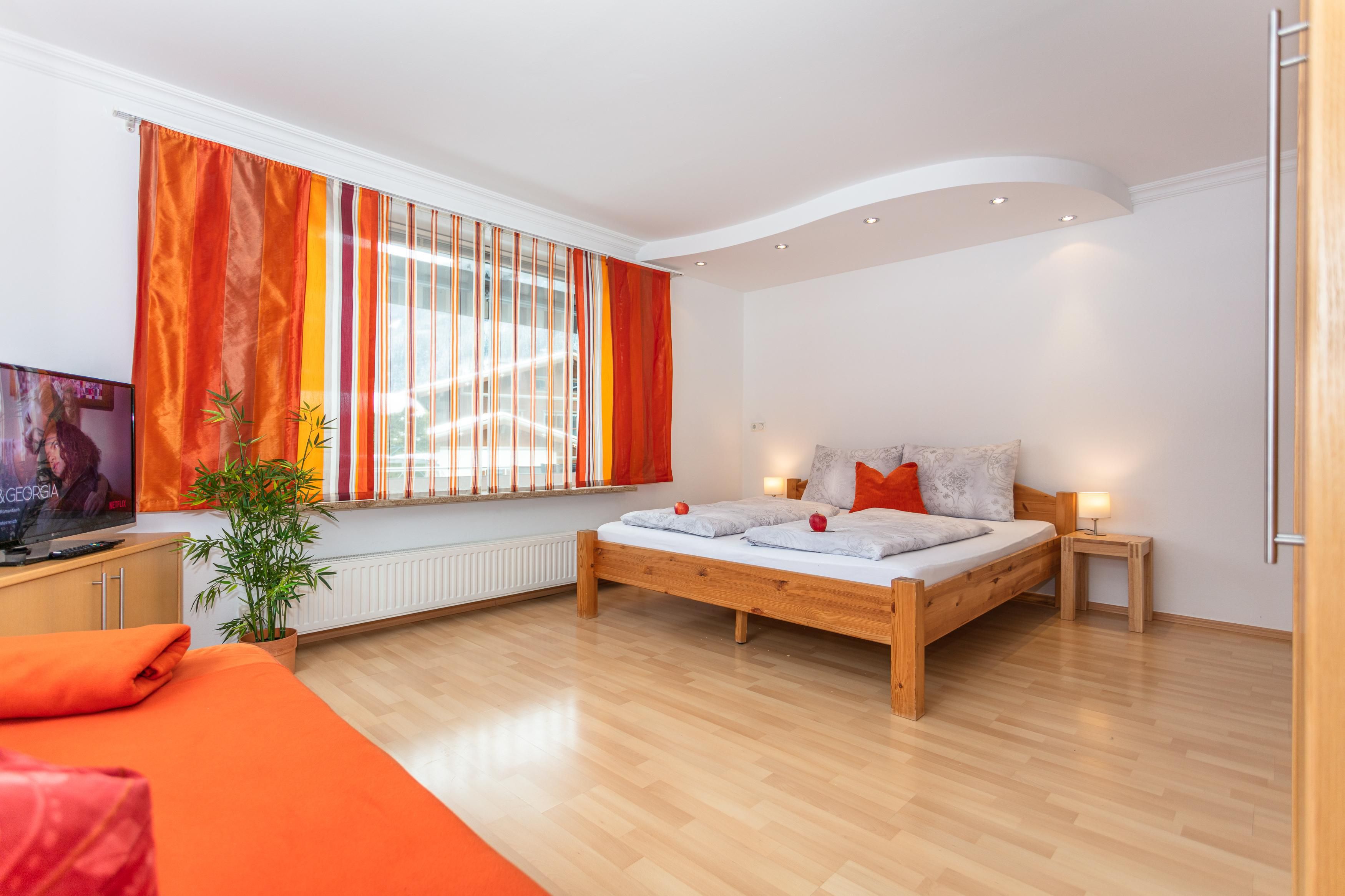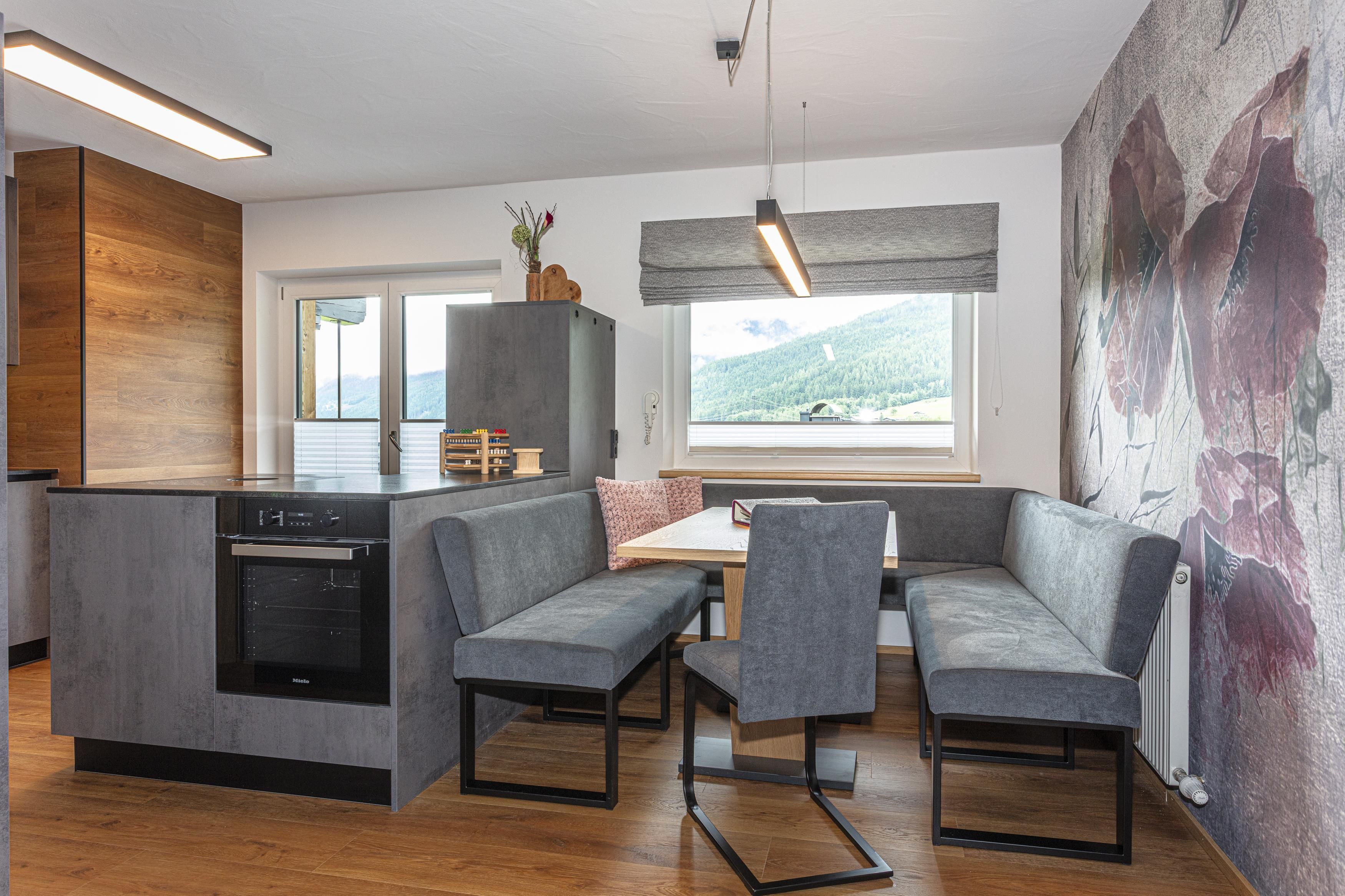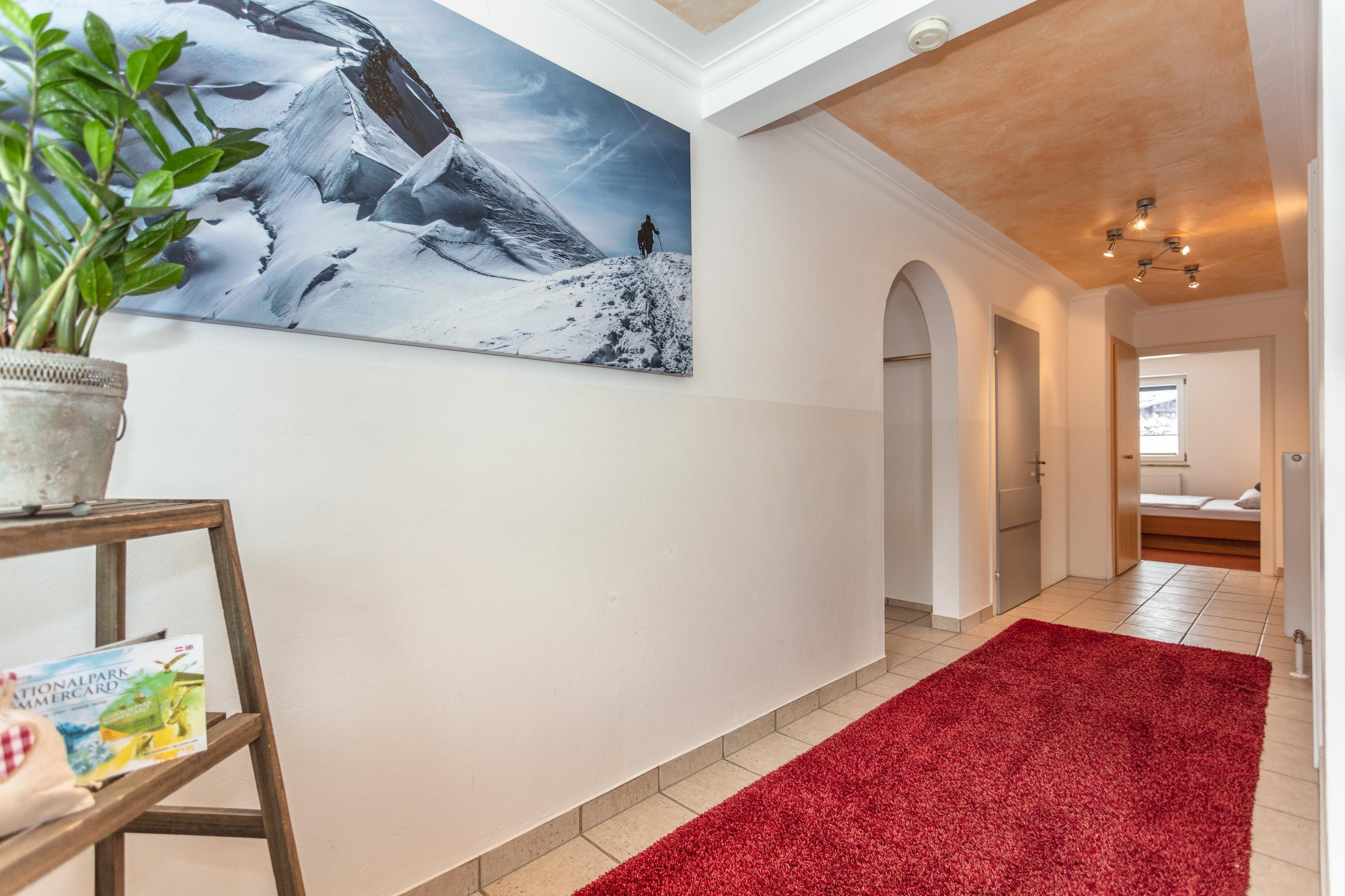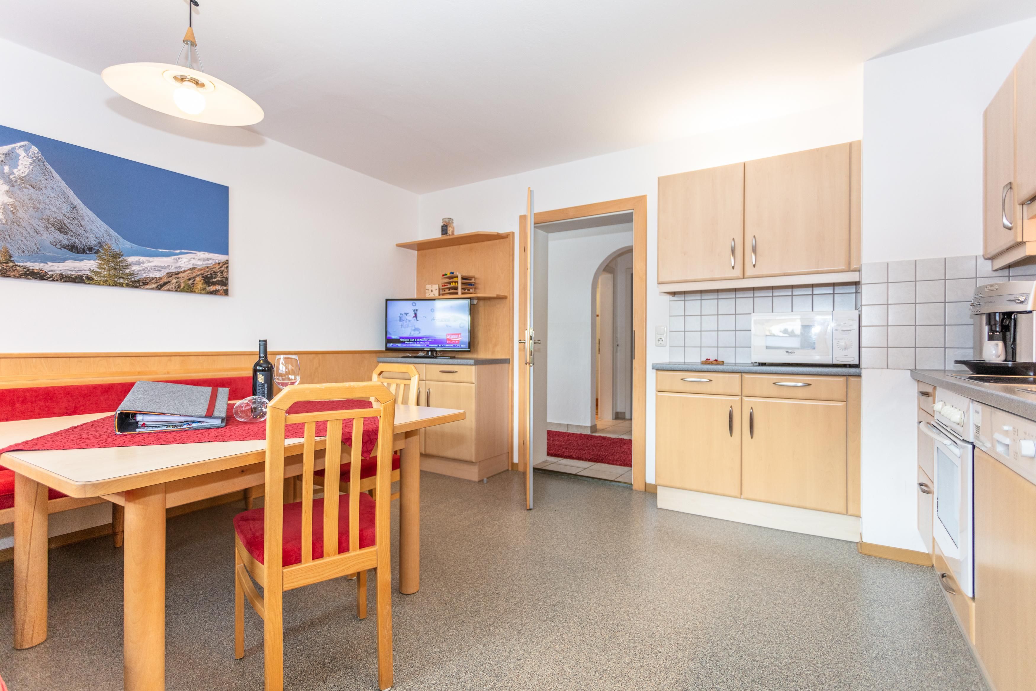 NEU renovierte Wohnung in der 2. Etage, für 4 bis max. 8 Personen, ca. 120 m² Küche: Sitzecke mit Esstisch, Küchenblock mit Spülbecken, E-Herd mit 4 Kochplatten und Backofen, Kühlschrank, Mikrowelle, Wasserkocher, Toaster, Kaffeemaschine, Kochtöpfe, Geschirr, Besteck, Gläser, Geschirrtücher, Geschirrspüler, Kabel-TV Spülmittel usw. Schlafräume: ein Doppelzimmer, ein Vierbettzimmer sowie ein kleines Doppelzimmer inkl. Bettwäsche, Zimmersafe, Kabel-TV,2 Badezimmer,1xDusche,1x Badewanne,Waschbecken,Handtuchtrockner,Fön,Seife,2xWC's separat Balkon (Südseite) mit Liegen und Sessel; Parkplätze, Skikeller mit Schuhtrockner, inkl. 200 m² Wellnessbereich und im Sommer ein Schwimmbiotop mit Liegewies