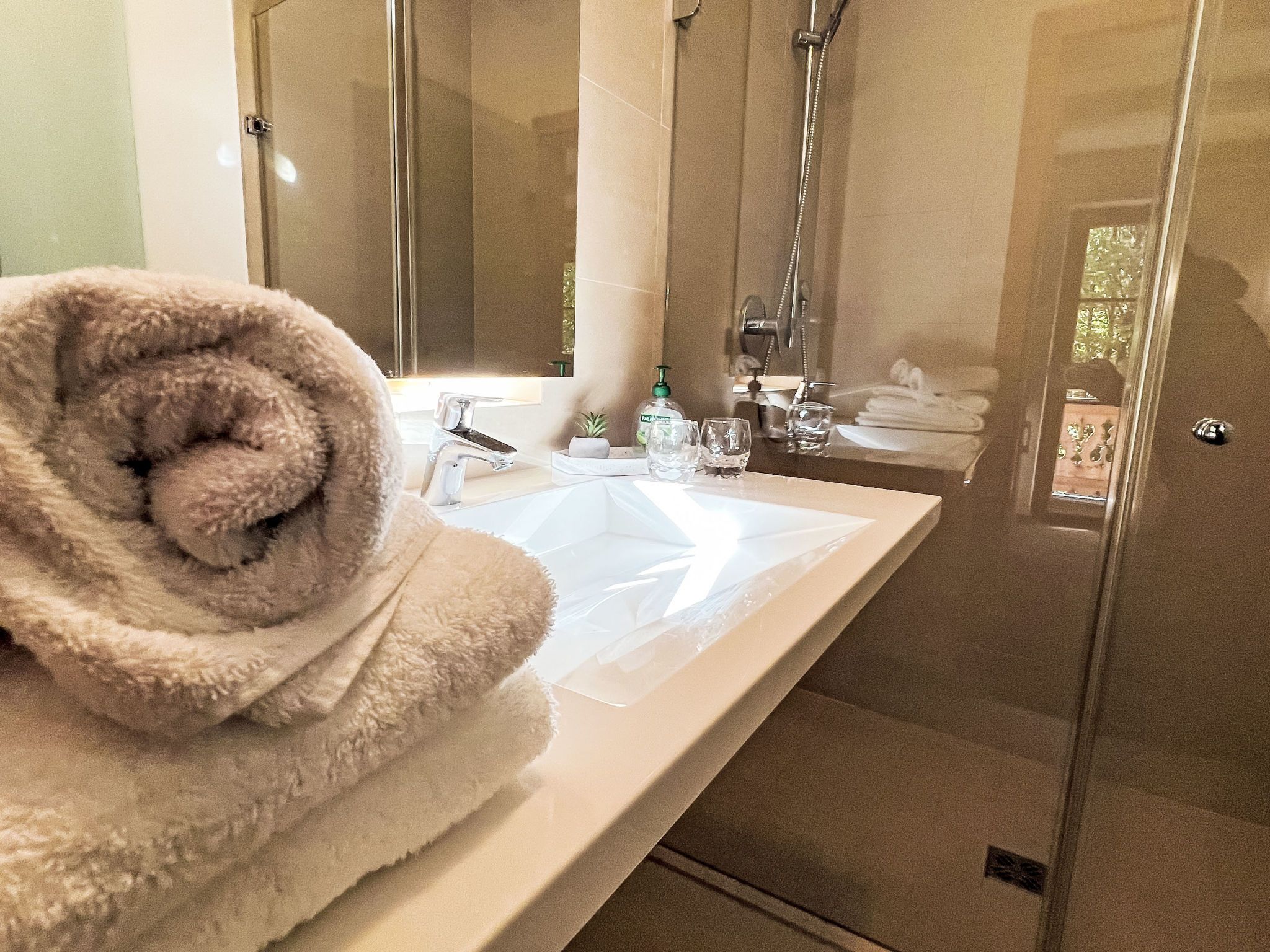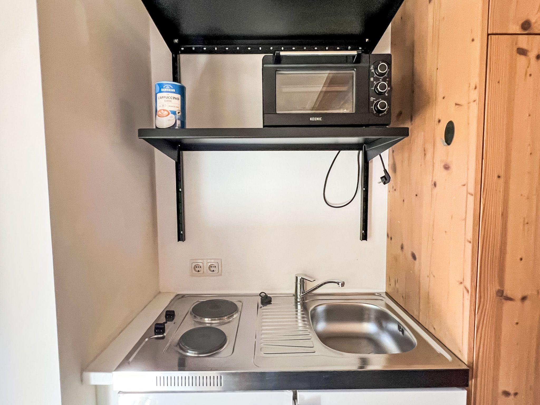 Studio, 1-Zimmer-Wohnung 20 m2. Schön und geschmackvoll eingerichtet: Wohn-/Schlafzimmer mit 1 Doppelbett (1 x 180 cm, Länge 200 cm), Esstisch und TV (Flachbildschirm). Kochnische (2 Kochplatten, Toaster, Wasserkocher, Mikrowelle, elektrische Kaffeemaschine). Dusche, sep. WC. Heizung. Balkon. Balkonmöbel. Sehr schöne Panoramasicht auf die Berge. Zur Verfügung: Internet (WLAN, gratis). Bitte beachten: Nichtraucher-Unterkunft.