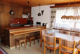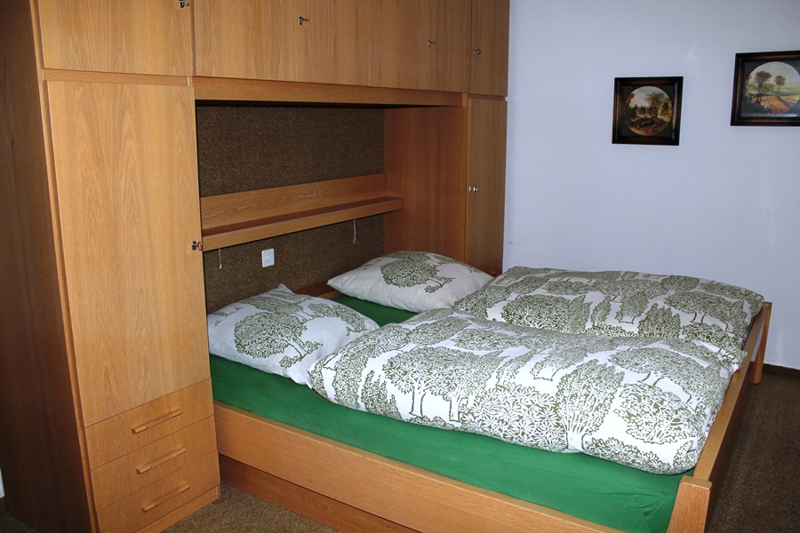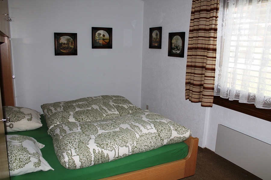 3.5-Zimmerwohnung mit Südbalkon, vollausgestattet mit schöner Küchenzeile, Esszimmerbereich, Wohnzimmer mit Sofabett, TV, Radio. 2 Schlafzimmer: 1 Zimmer mit Doppelbett. 1 Zimmer mit 2 Einzelbetten, Badezimmer mit Dusche und WC.