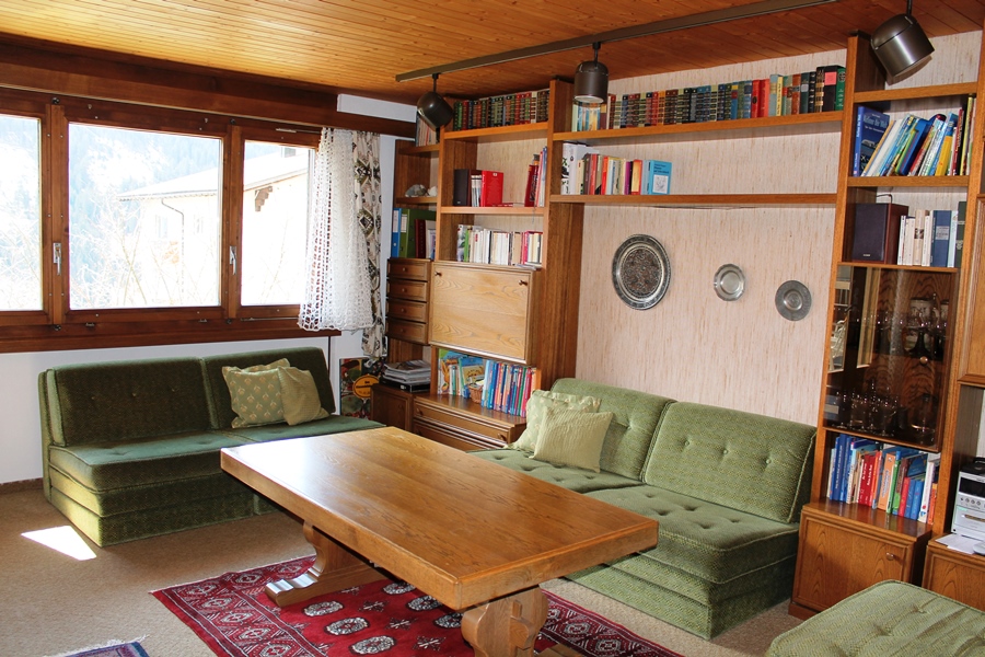Gemütliche, Ferienwohnung im 1. Stock eines Sechsfamilienhauses in ruhiger Ortsrandlage (50 m oberhalb der Bahnstation Sedrun). 1 Parkplatz gibt es vor dem Haus.
