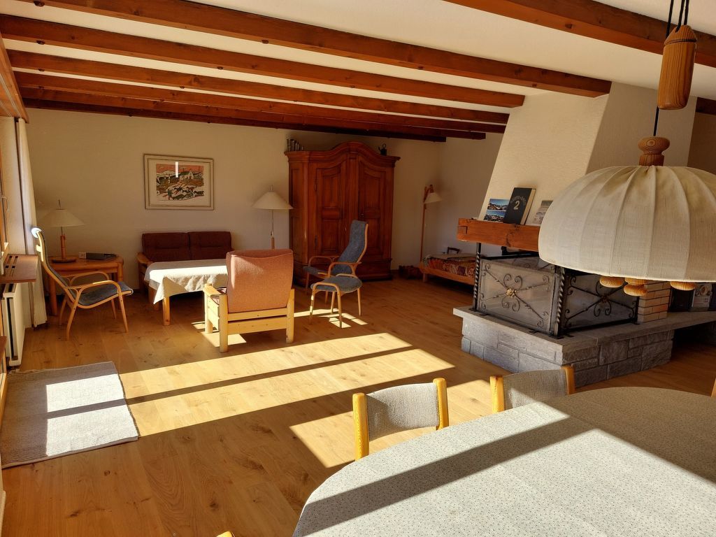 160 m2. Weitere Angaben des Anbieters: Im Parterre befindet sich das sehr grosse, stilvoll eingerichtete Wohnzimmer mit dem grossen Cheminée, einer gemütlichen Sitzecke und dem Esstisch für 8 Personen. Im Wohnzimmer befinden sich auch Radio / TV. Die zweckmässig aber vollständig (inkl. Abwaschmaschine) eingerichtete Küche ist gleich angrenzend. Ebenfalls im Parterre befindet sich ein separates WC. Der grosse Gartensitzplatz ist über das Wohnzimmer zugänglich. Im 1. Stock befinden sich die drei Schlafzimmer. Ein Schlafzimmer mit Doppelbett verfügt zudem über ein eigenes Badezimmer (mit Badewanne) und über einen eigenen, grossen Balkon. Über diesen gelangen Sie zudem in die Doppelgarage. In den anderen zwei Zimmern befindet sich je 2 Einzelbetten, die zusammengestellt werden können. Weiter finden Sie im 1. Stock ein weiteres Badezimmer mit Sitzbadewanne und Waschmaschine. Vor Ort mit der Schlüsselhalterin in Bar abzurechnen: CHF 15.- / Person und Aufenthalt für Bettwäsche Auf Anfrage ist die An- und Abreise auch an einem anderen Tag möglich, idealerweise freitags.