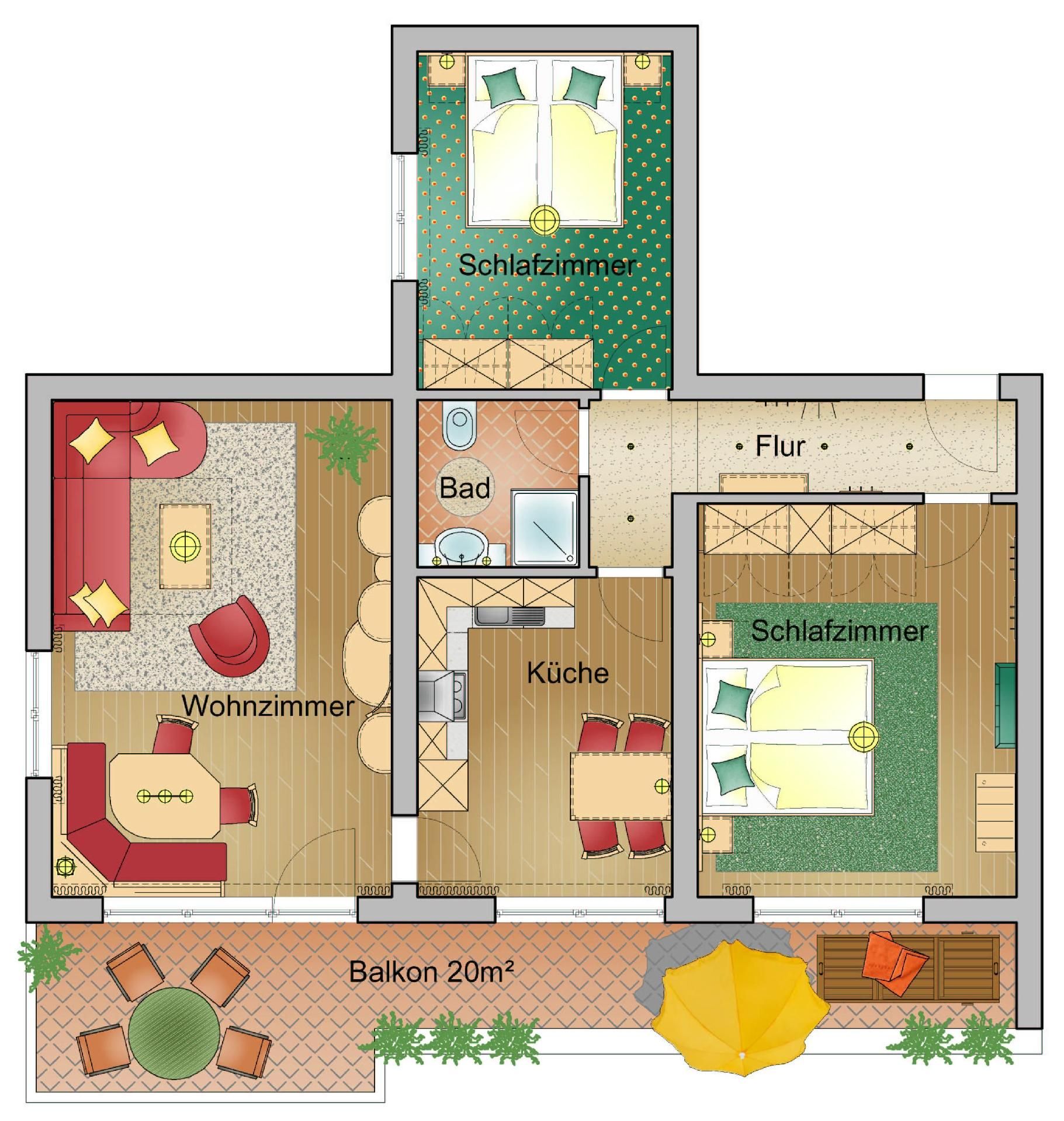 Schlafmöglichkeiten: Anzahl Doppelbetten (1,80m Breite): 2